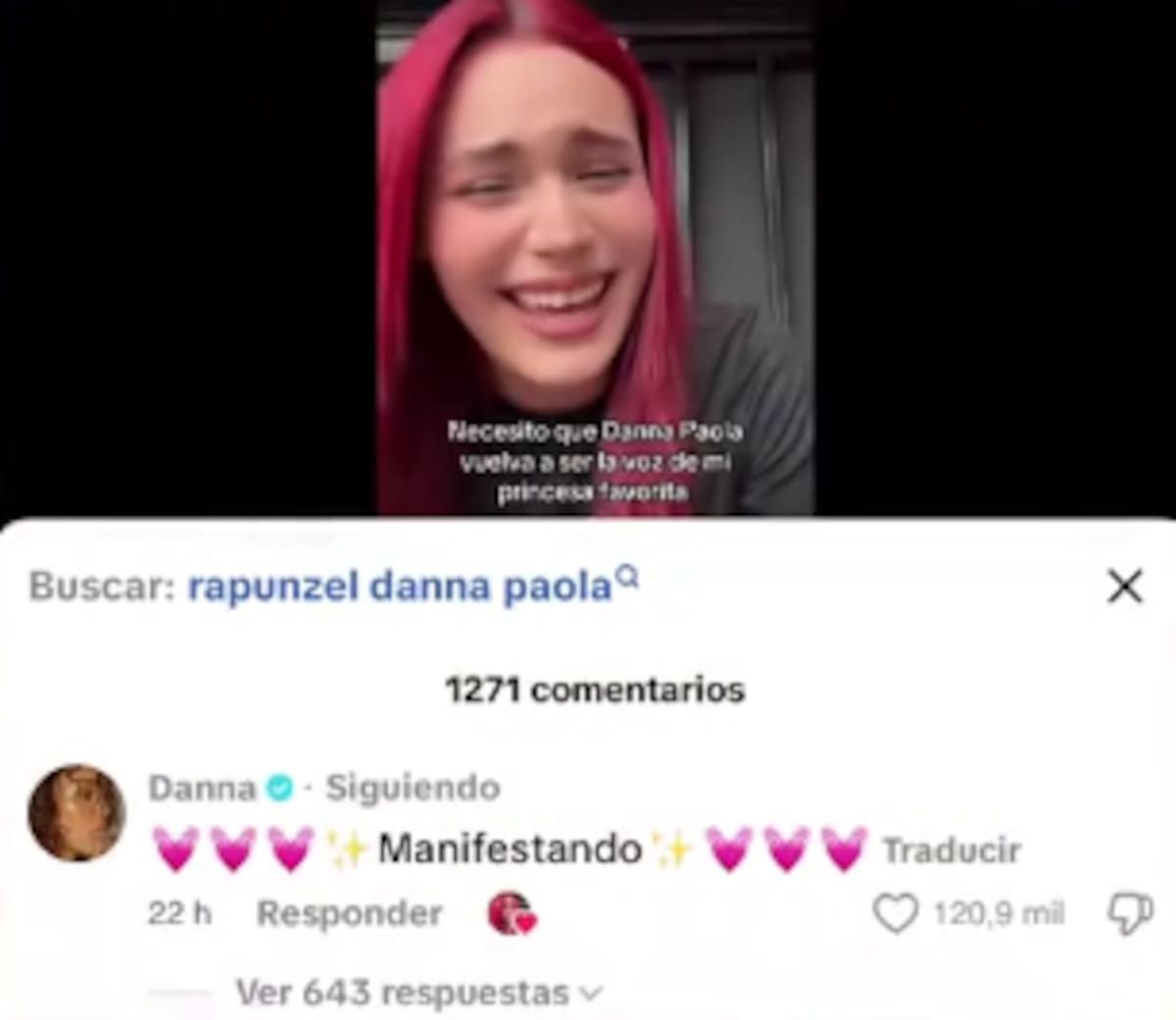 La conversación reciente se intensificó a partir de un comentario de Danna Paola en respuesta a un video de TikTok donde una usuaria expresaba su deseo de que ella regresara como Rapunzel para el proyecto live-action. Danna respondió con la palabra “manifestando”, lo que fue interpretado por miles de fans como una señal de apertura o deseo de verse nuevamente en ese papel.
