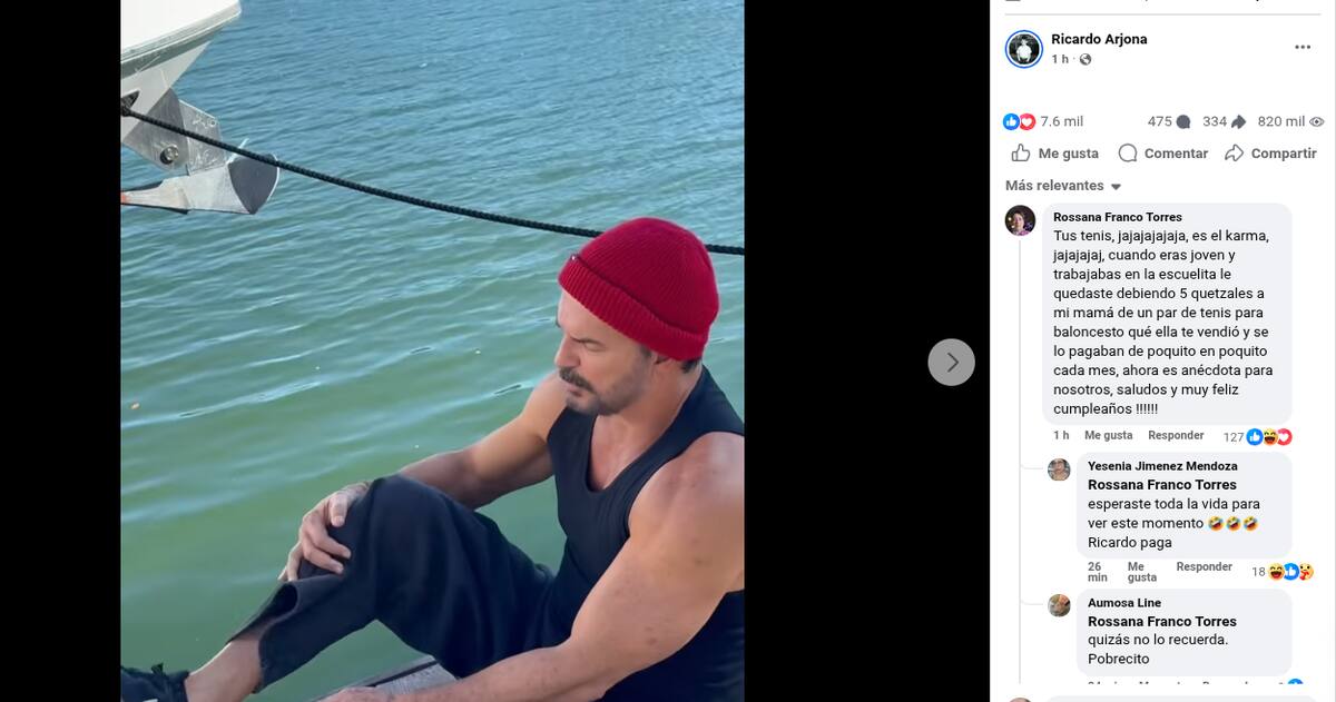 Ricardo Arjona celebró su cumpleaños con un mensaje en redes, pero una usuaria revivió una anécdota de su juventud al asegurar que el cantante quedó a deber dinero por unos tenis, provocando risas entre sus seguidores.