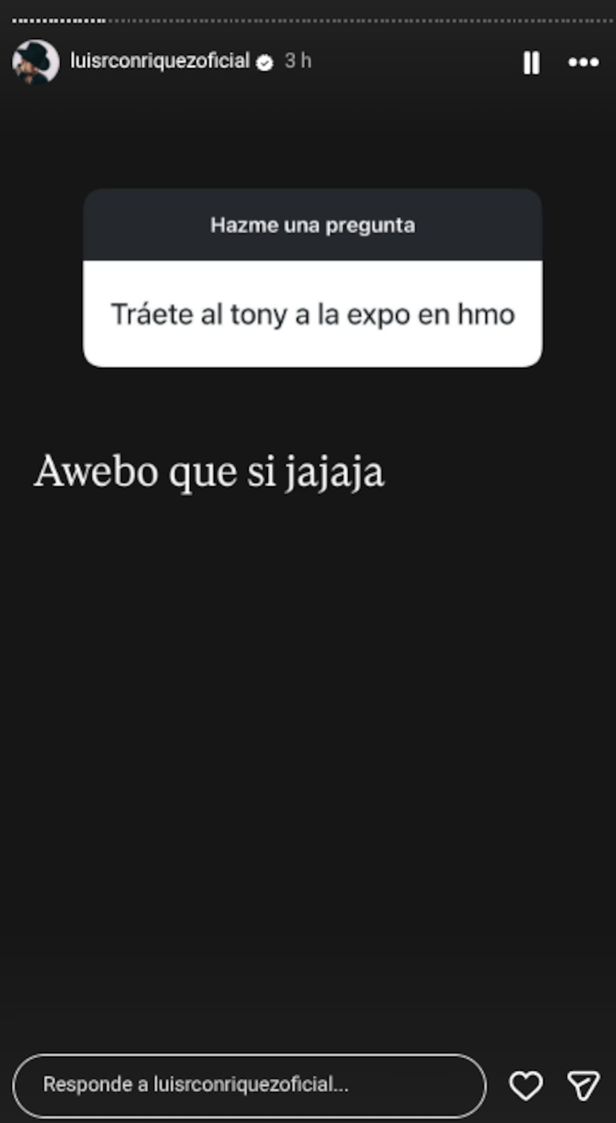 Más allá de la polémica, otra parte de la dinámica de preguntas generó expectativa entre el público de Hermosillo, ciudad clave en la carrera de Luis R. Conriquez. En sus historias, un seguidor le escribió: “Ven a Hermosillo”, haciendo referencia a una posible presentación en la capital de Sonora.