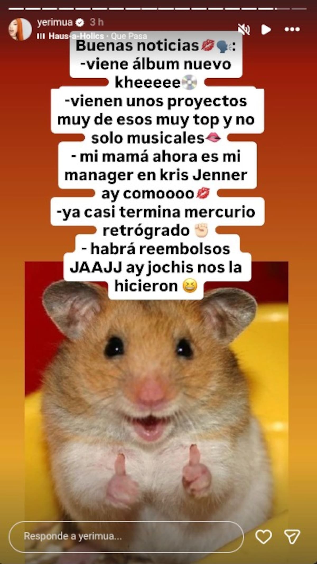 A pesar del anuncio, Yeri Mua también compartió lo que describió como “buenas noticias”, adelantando una nueva etapa en su carrera.