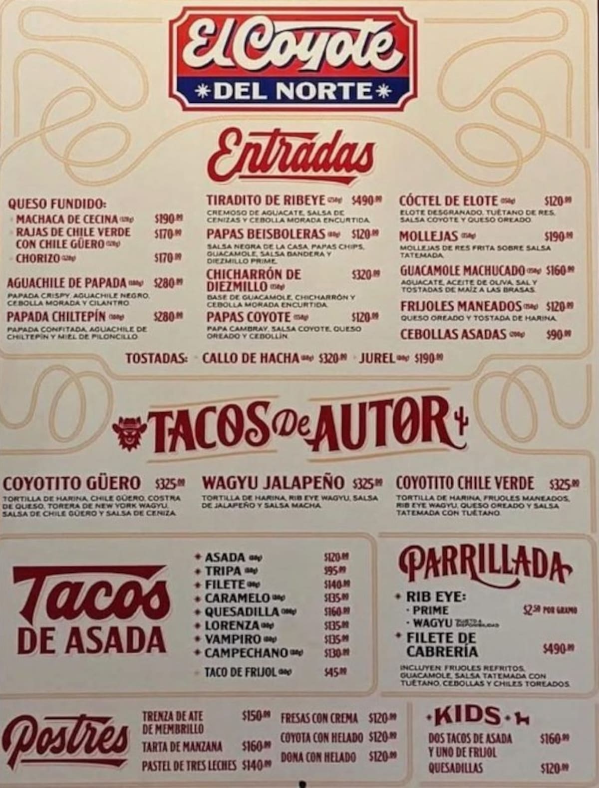 Estos serían los precios de La Taquería El Coyote de Carín León: menú y horarios
