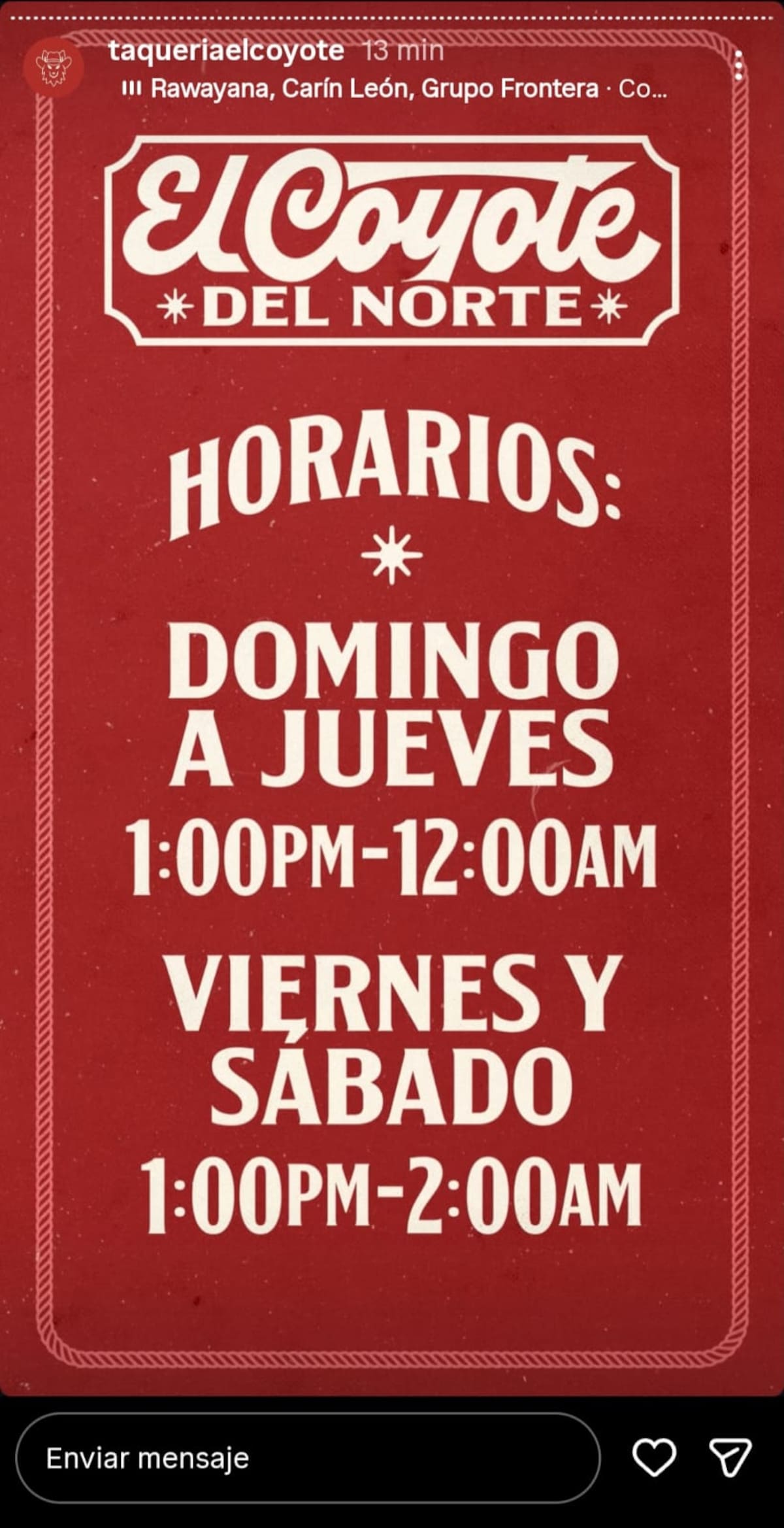 A solo horas de su apertura oficial, la taquería “El Coyote del Norte”, proyecto del cantante Carín León, ha generado gran expectativa no solo por su concepto, sino también por los precios que podrían manejar.