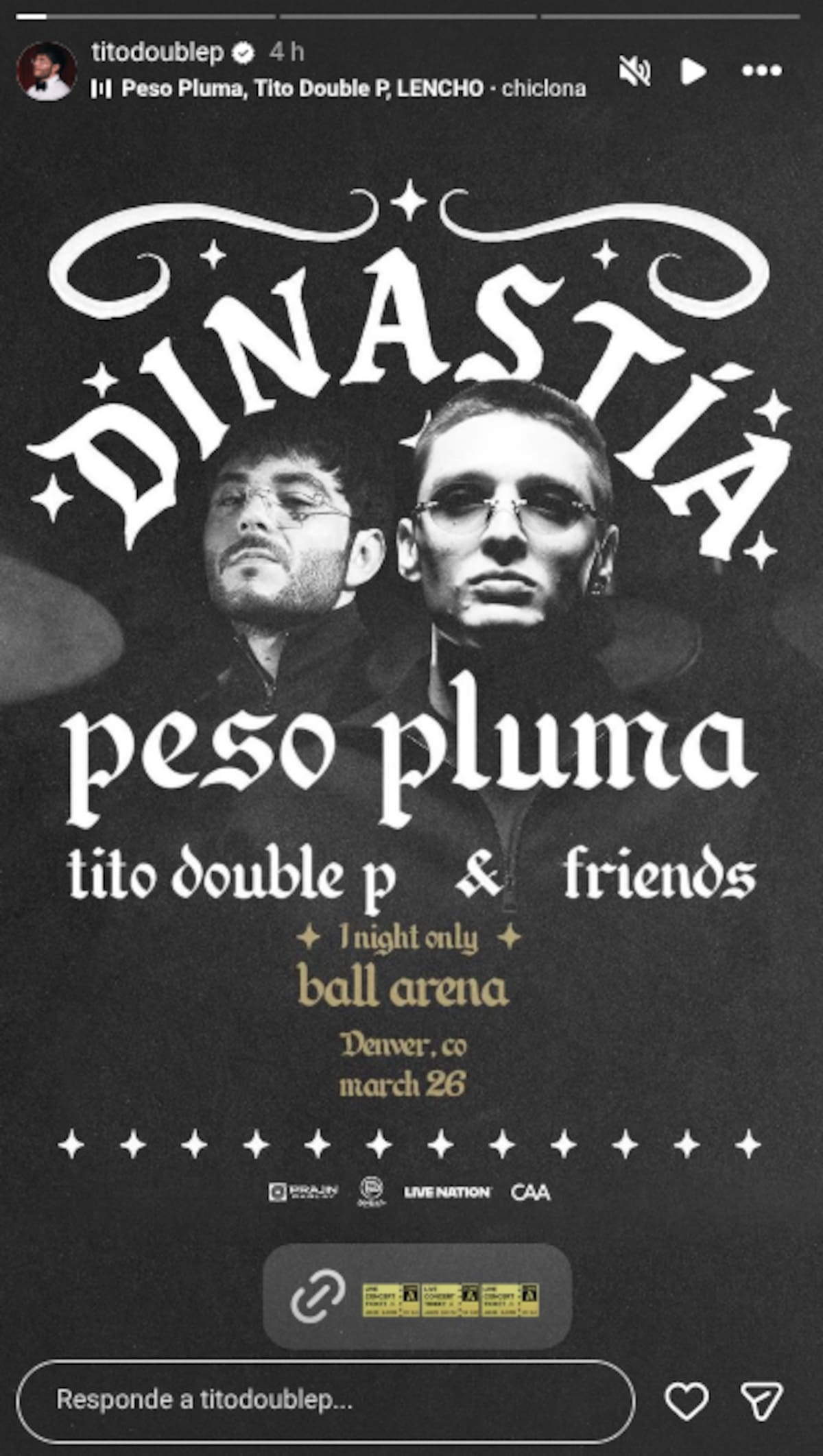 Actualmente, Peso Pluma y Tito Double P se encuentran realizando presentaciones en conjunto como parte de su gira por Estados Unidos.