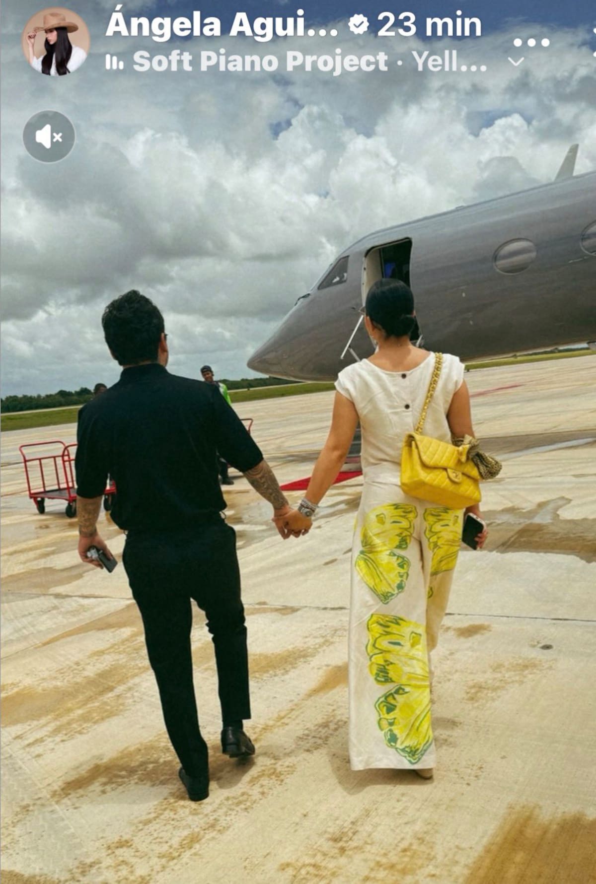 Su aparición en República Dominicana no pasó desapercibida, especialmente porque la propia Ángela Aguilar compartió una imagen donde la pareja se encontraba a punto de abordar su jet privado, donde se les ve a ambos con el mismo outfit que en la imagen que compartió el político.