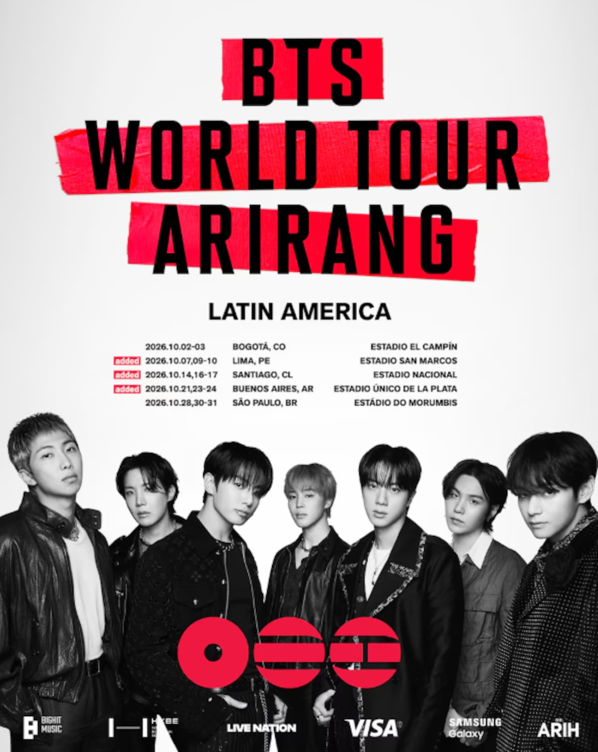 Con estadios programados, múltiples fechas y paquetes VIP, la gira ARIRANG promete ser uno de los espectáculos más ambiciosos en la historia del K-pop en la región.