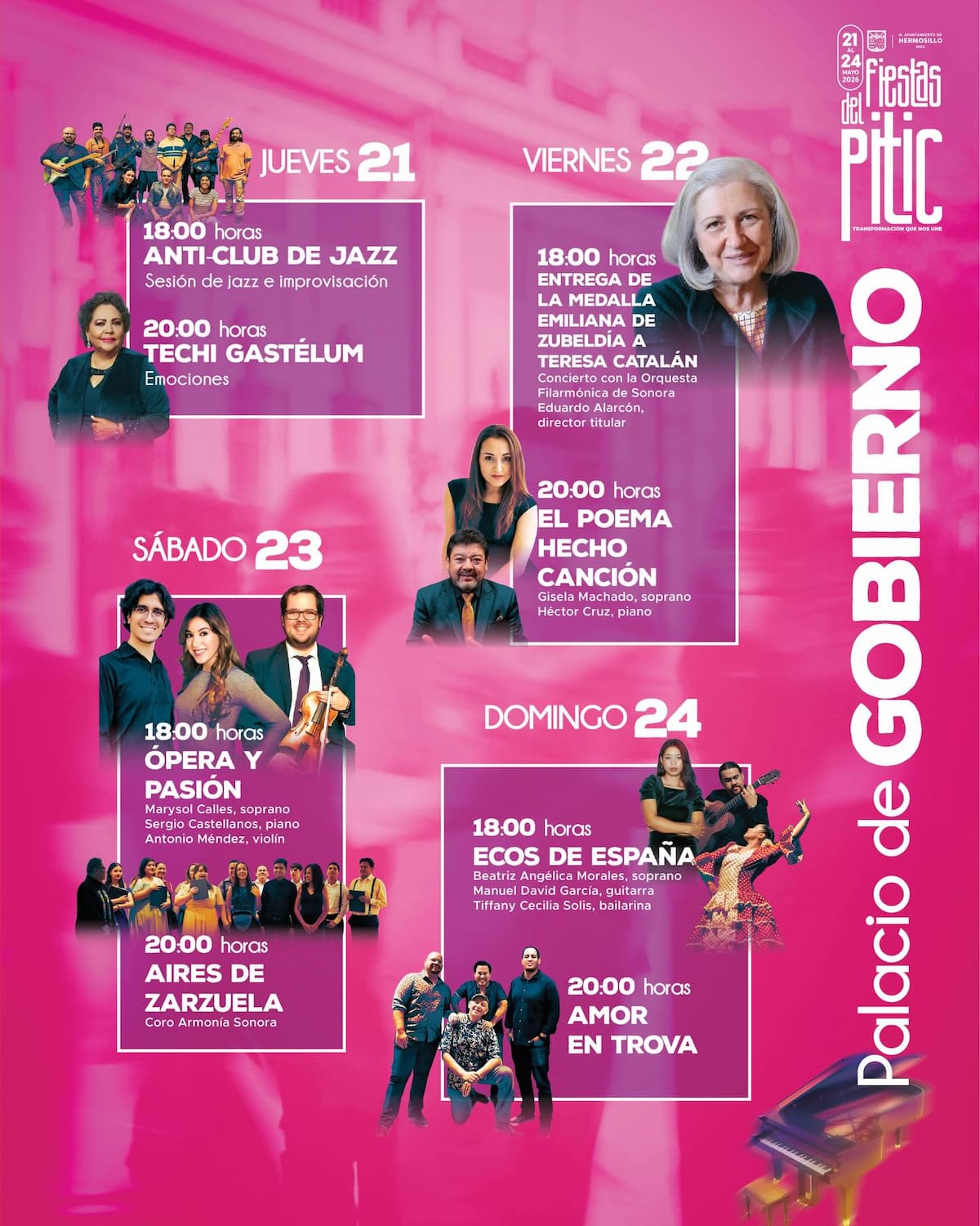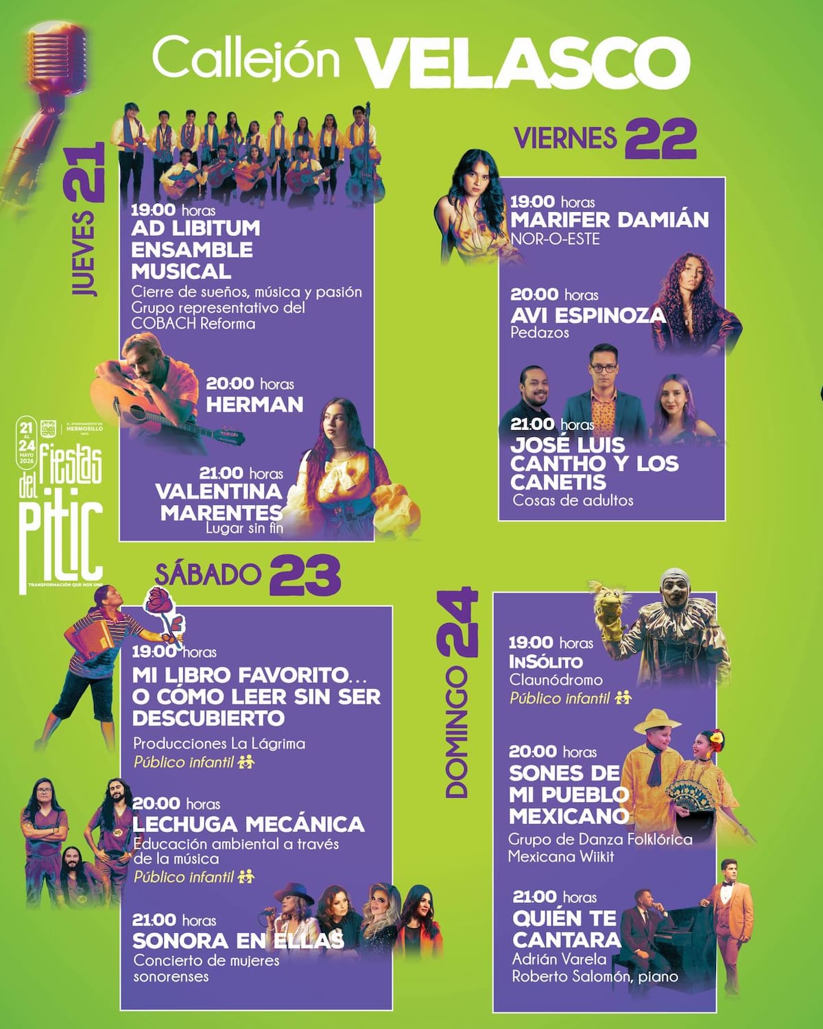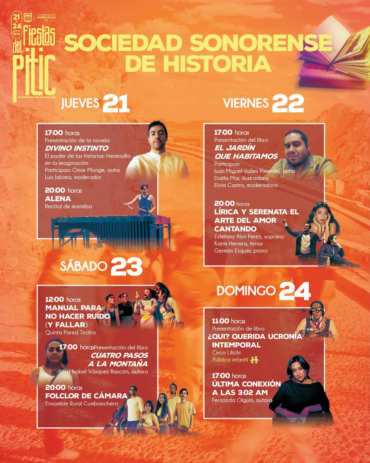 Además de los conciertos, el programa de las Fiestas del Pitic 2026 contempla una amplia oferta cultural.