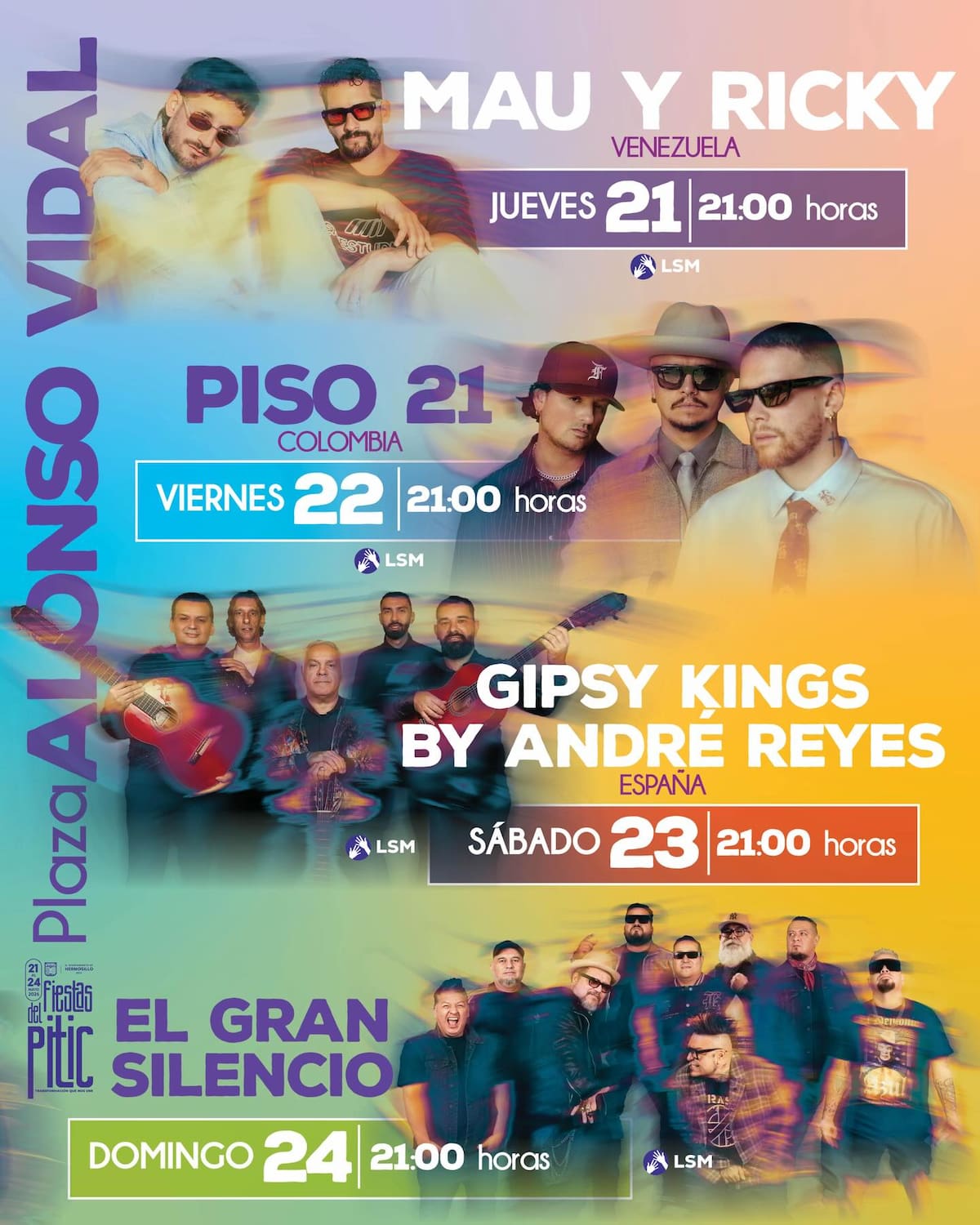 Como es tradición, las Fiestas del Pitic ofrecerán conciertos gratuitos distribuidos en distintos escenarios ubicados en el primer cuadro de la ciudad.