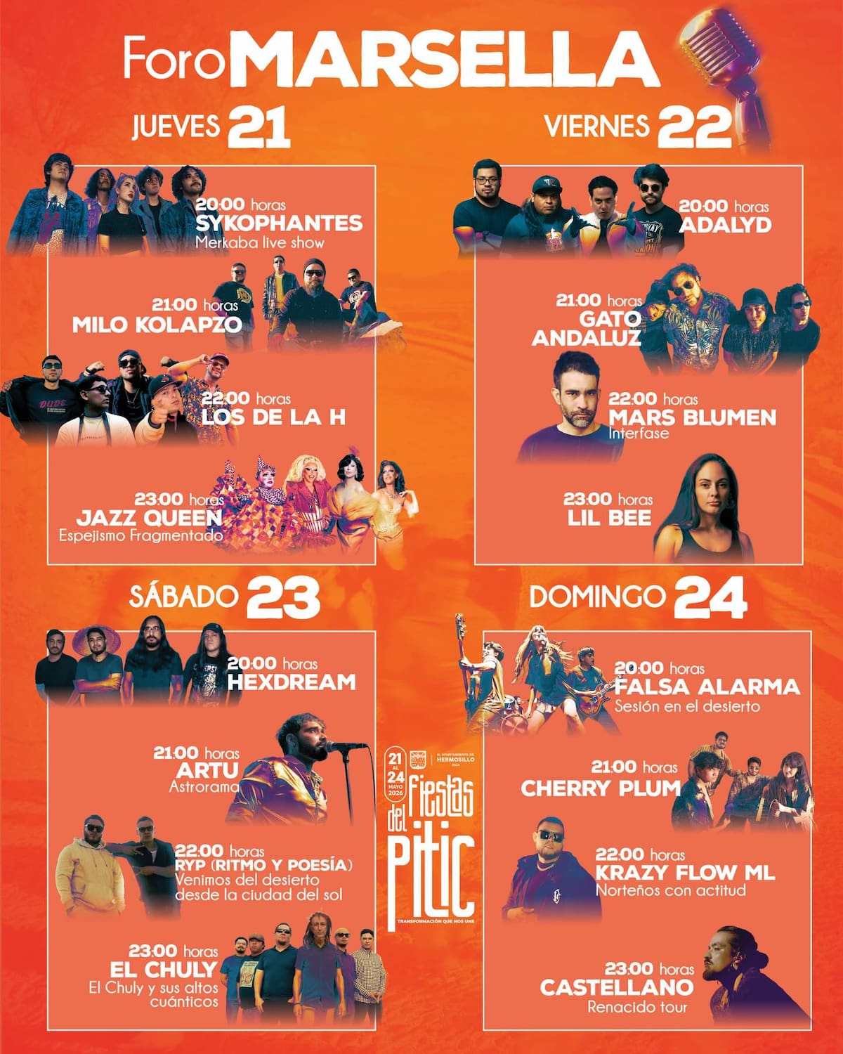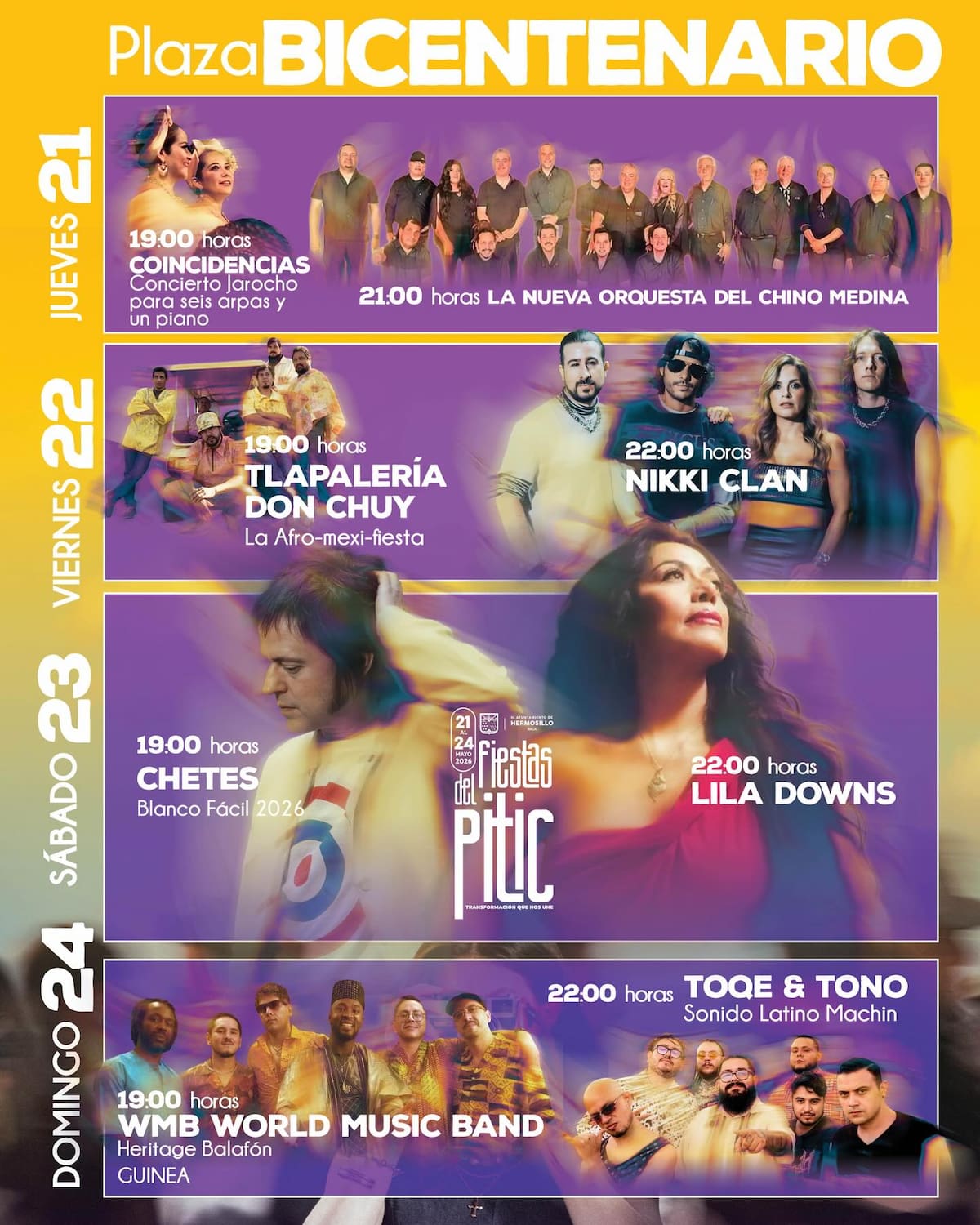 Este martes 21 de abril se dio a conocer la esperada cartelera de las Fiestas del Pitic 2026, uno de los eventos culturales más importantes del noroeste de México.