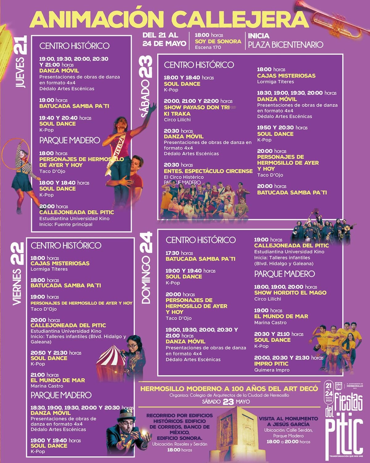 El festival se llevará a cabo del 21 al 24 de mayo en el centro histórico de Hermosillo, con una programación que incluirá conciertos, actividades artísticas y espectáculos multidisciplinarios completamente gratuitos.