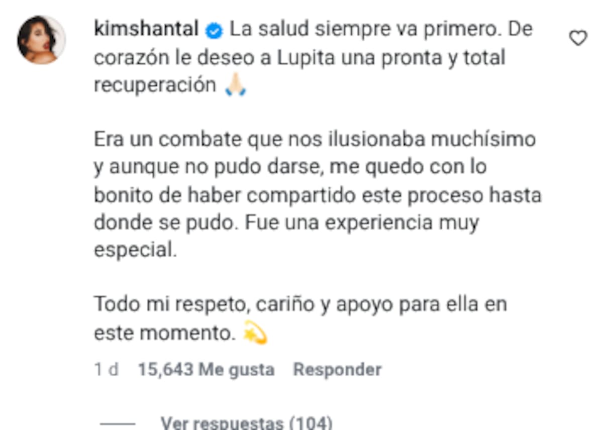 Por ahora, los organizadores trabajan en la definición de una nueva rival para Kim Shantal, mientras el estado de salud de Lupita continúa bajo supervisión médica.