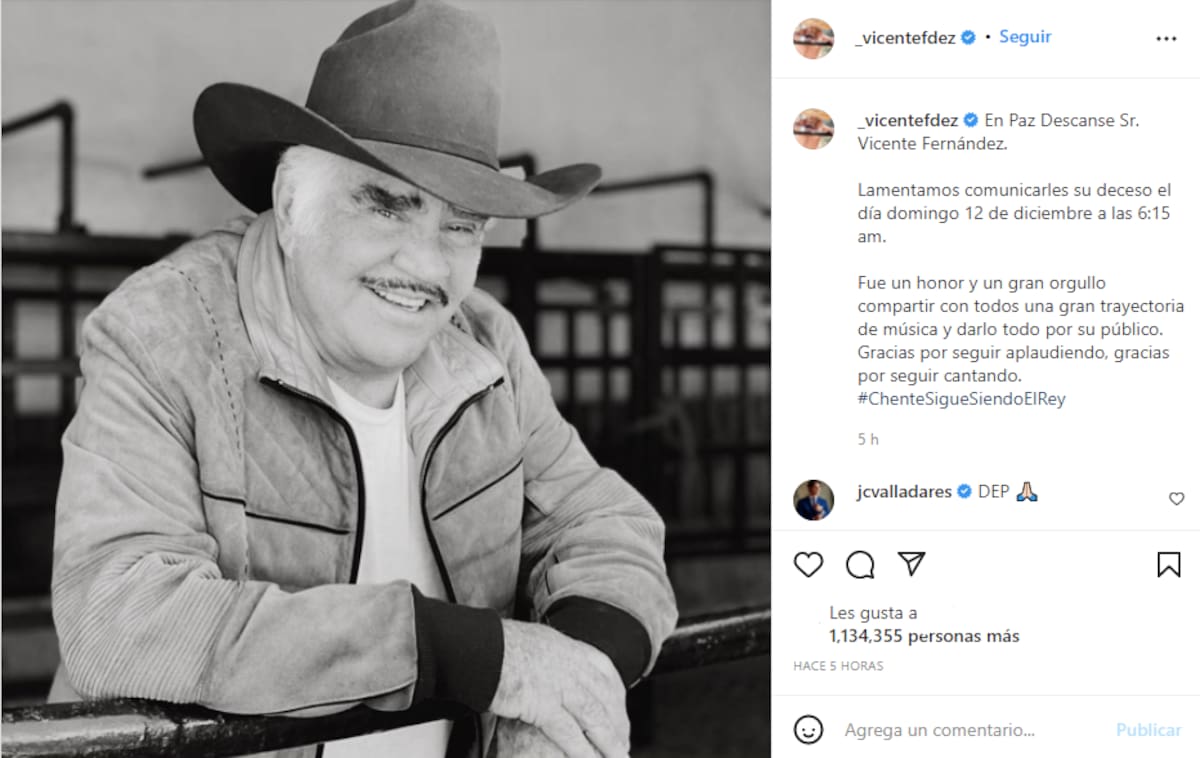 Luego de que la noticia de la muerte de Vicente Fernández se diera a conocer entre el público, tanto amigos, seguidores y celebridades han rendido honor en memoria de "El Charro de Huentitán".