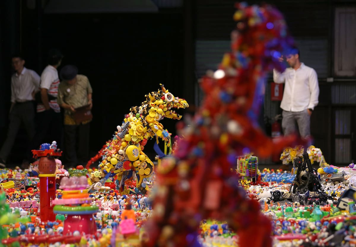 "Quiero encontrar un equilibrio entre la diversión de ver todos estos juguetes, al tiempo de sentir el peligro (del plástico)", dice el artista, quien agrega que en su obra quiere darle un nuevo propósito a la masa de juguetes de plástico que tiramos.