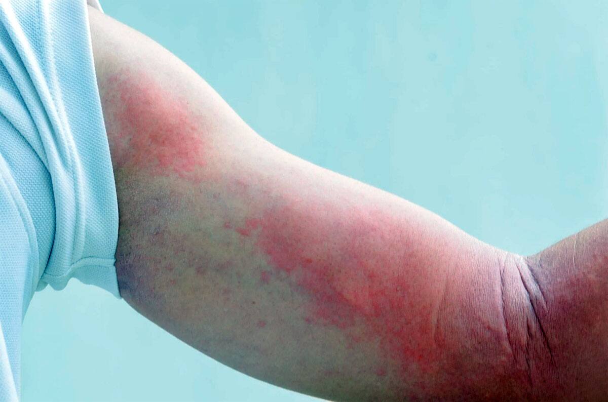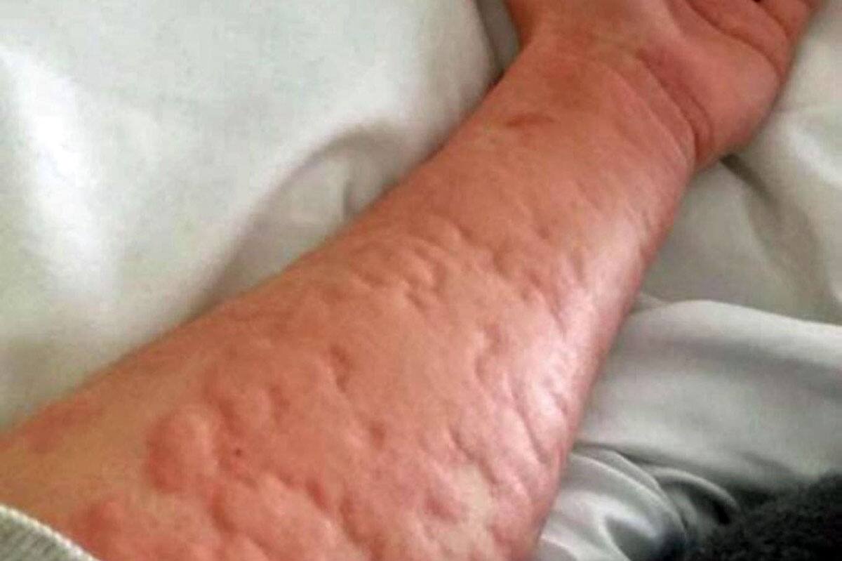 Los síntomas son ronchas rojas o ampollas al lado de la mandíbula, la mejilla y las orejas son los síntomas que sufren las personas alérgicas.