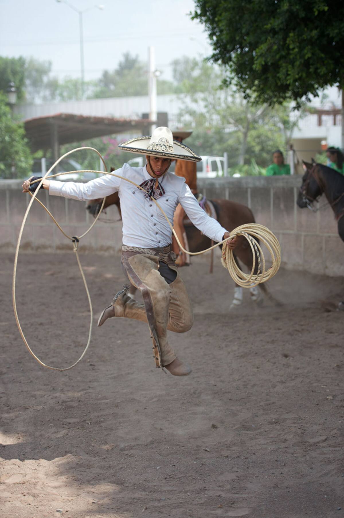 La vestimenta de los charros está reglamentada y algunos elementos son demandados por la exigencia de la actividad deportiva que se realiza.