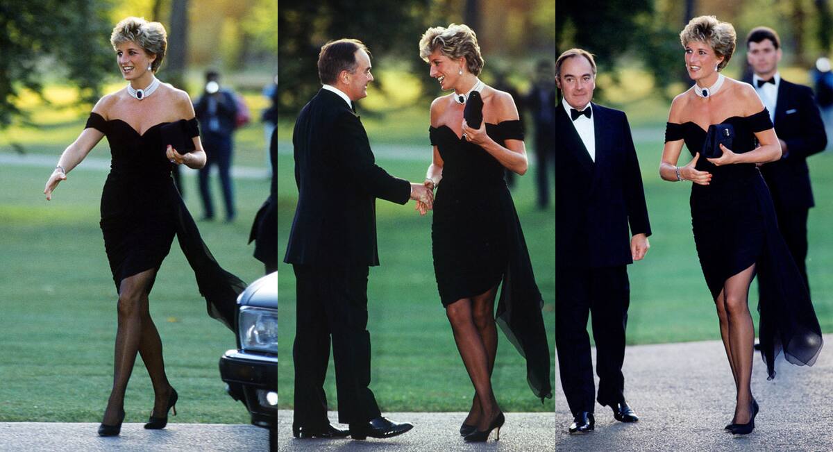 Son pocos quienes no conocen aquellas imágenes tomadas en 1994 de Diana descendiendo de su auto, enfundada en un espectacular vestido drapeado con escote bardot, combinado con medias negras transparentes y stilettos.