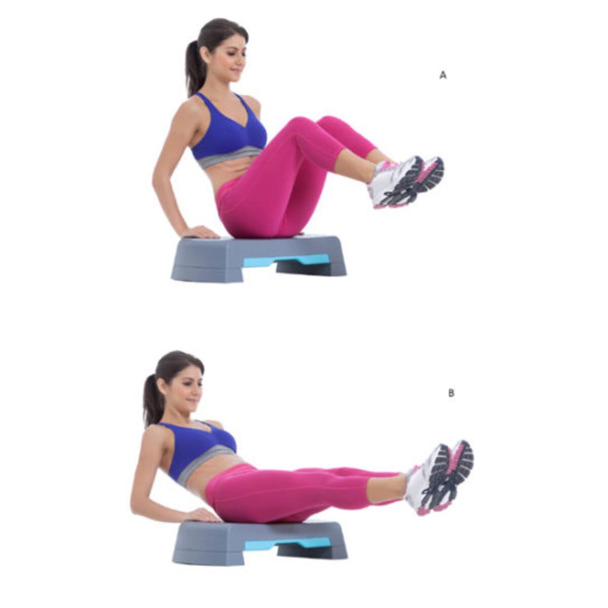 Activa el abdomen y extiende las dos piernas juntas hacia delante. Haz de 10 a 15 repeticiones de este ejercicio.