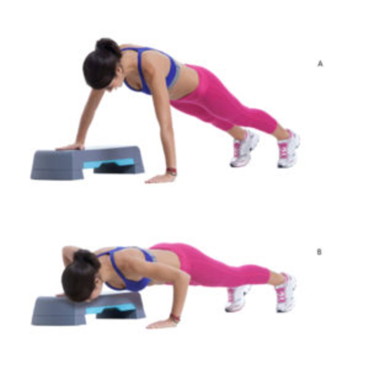 Baja el pecho flexionando los brazos y vuelve arriba. Realiza 15 repeticiones y repite cambiando el apoyo con la otra mano.