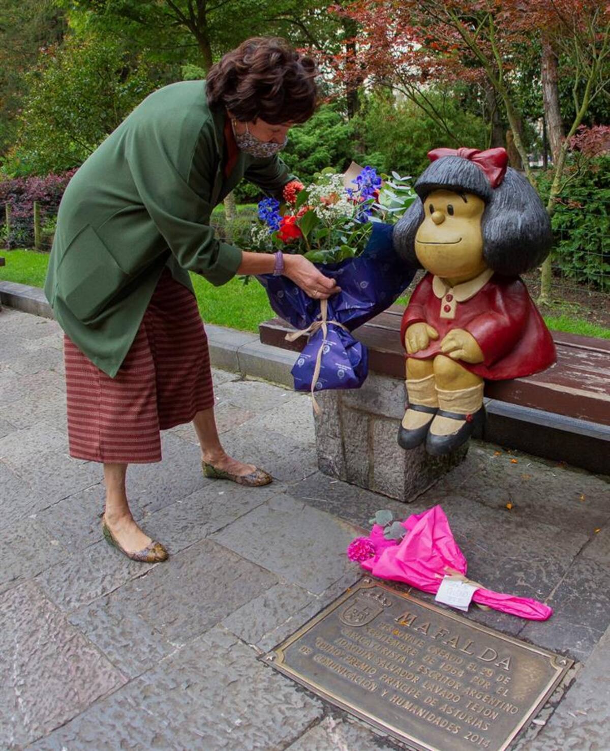 En Oviedo (España) hay una figura de Mafalda de 80 centímetros, realizada en arcilla recubierta con resina y fibra de vidrio para protegerla del sol o la lluvia, a cuya inauguración asistió Quino en 2014.