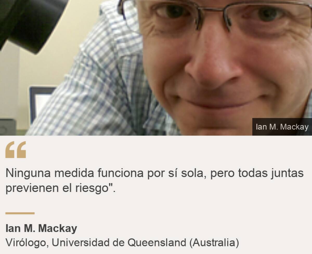 "Algunas teorías (sin evidencia científica) pueden ser propagadas en internet por muchas personas y erosionar cualquiera de esas capas porque cambian lo que la gente piensa sobre las mascarillas y sobre otros elementos", dice Mackay.