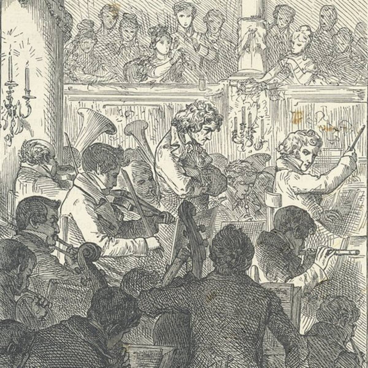 De espaldas al público, Beethoven dirigió a los músicos con una pasión desenfrenada, sacudiendo su cuerpo y agitando sus brazos al compás de la música.