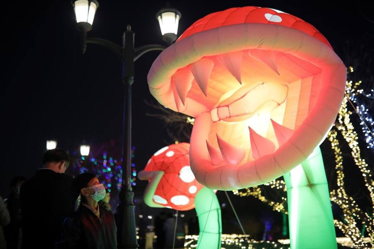 Decenas de residentes se acercaron a zonas aledañas al pintoresco lago de Shuizhui, en el céntrico distrito de Chaoyang, para pasear y hacerse fotos ante los faroles minuciosamente colocados allí.