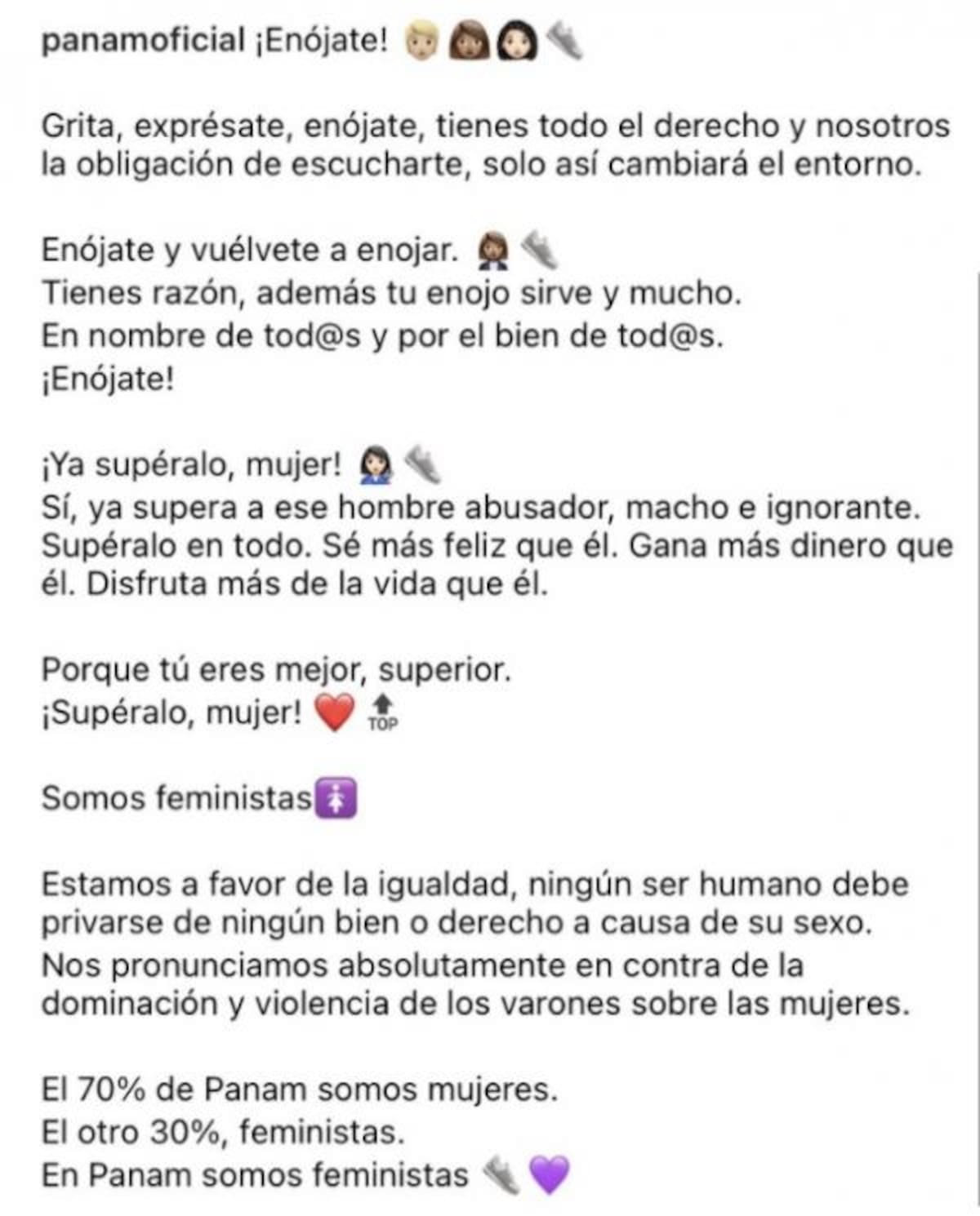 En redes sociales, las internautas se manifestaron en contra de que Panam lucre con el 8M luego de que la marca lanzara una línea de tenis "feministas", argumentando que podían hacerlo porque en la compañía el 70 por ciento del personal con mujeres. Lo que no significa que no sean machistas.