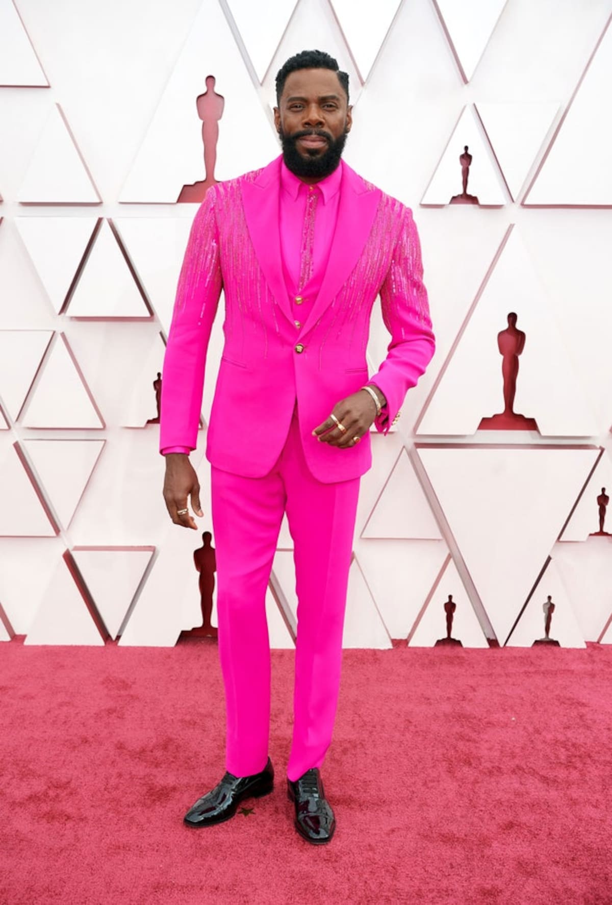 Colman Domingo también llevó un traje rosa a la ceremonia de los Oscars 2021, pero con un diseño más especial detallado en el saco y en la corbata, dándole un giro más llamativo al traje.