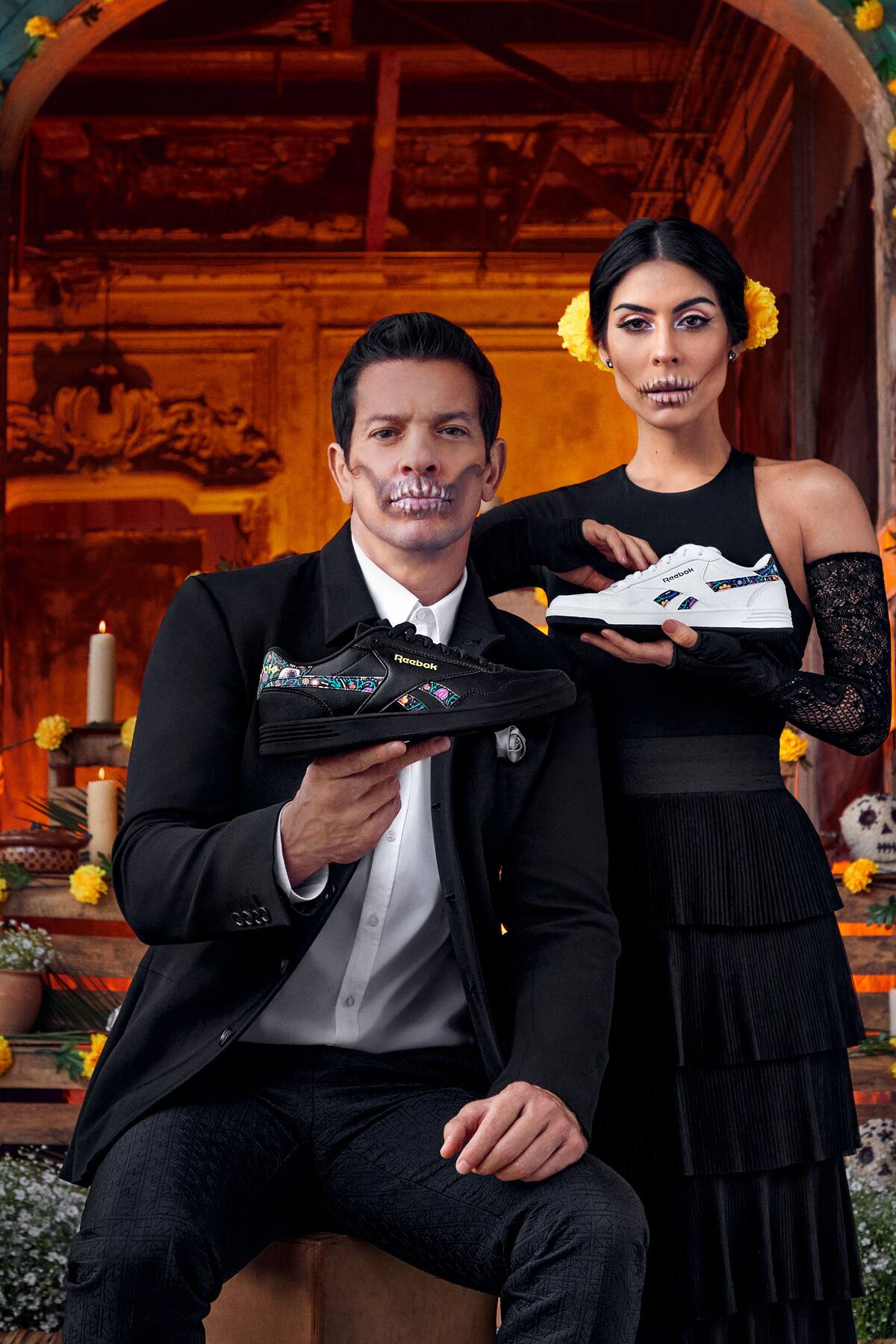 En el comunicado, Reebok señala que esta nueva colección es “protagonizada por la cantante, actriz y bailarina Maria León y el cantautor mexicano Yahir donde hacen alusión a la muerte en un entorno que hace tributo a la cultura y el simbolismo del festival mexicano".