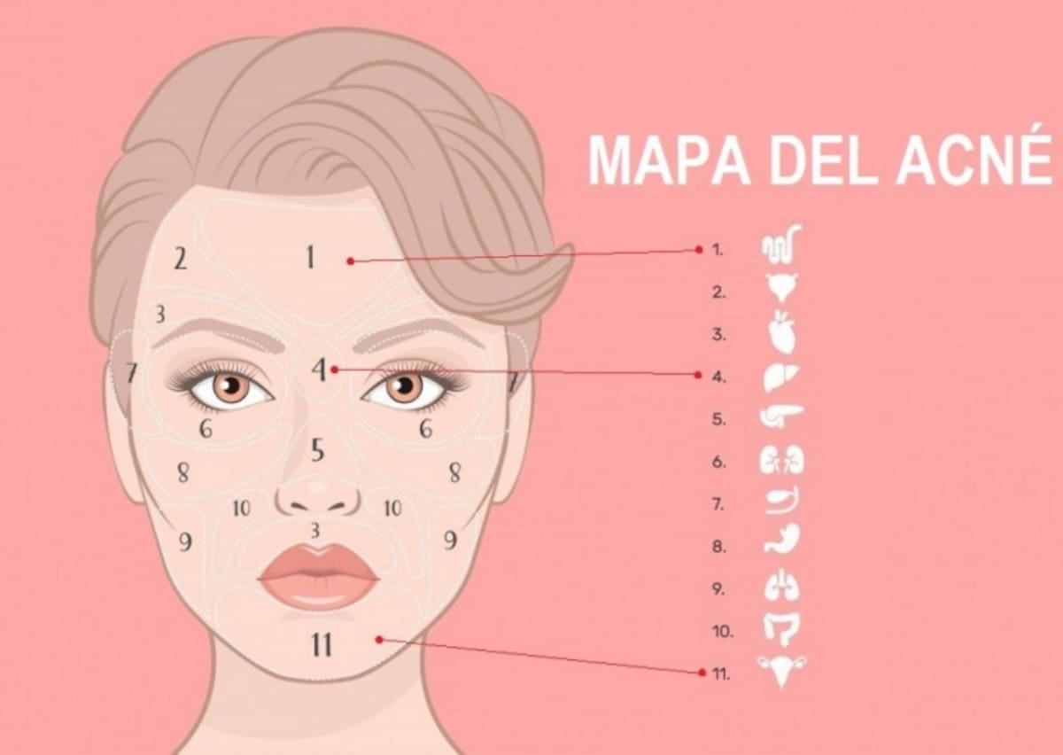 De acuerdo al lugar donde se presente el acné en el rostro, puede estar ligado a alguna falla en el organismo.