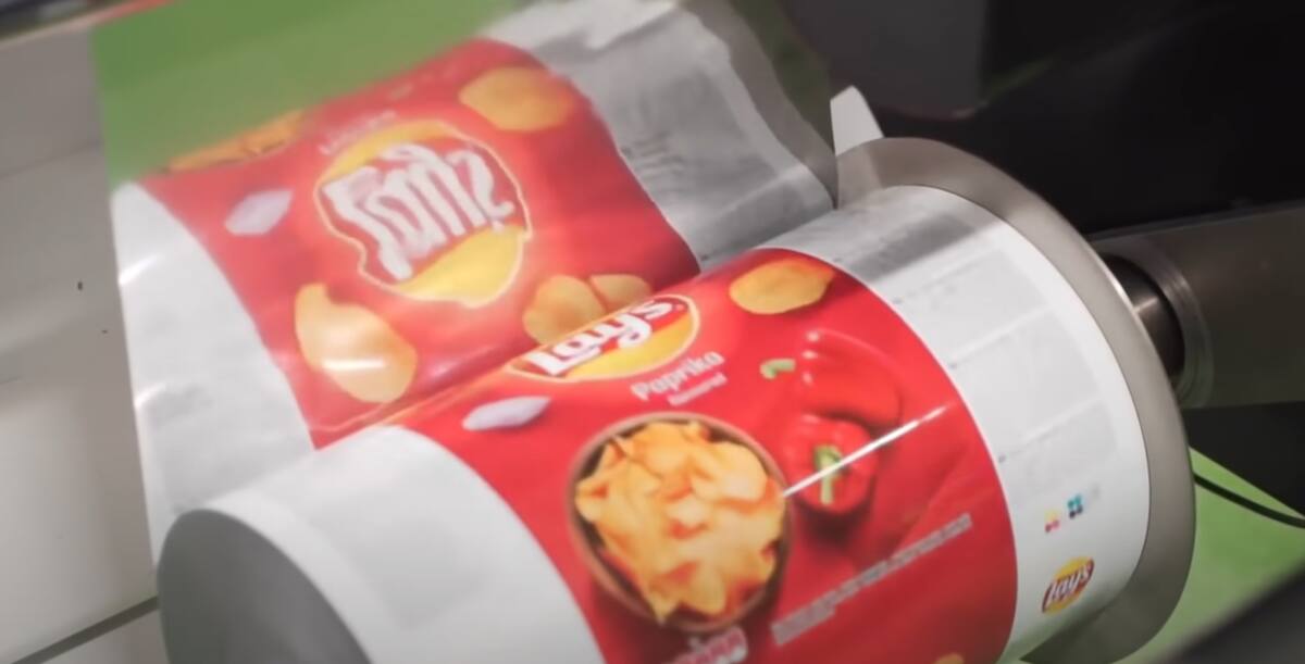 Se utilizan rollos de película de envasado y las papas fritas se introducen en bolsas. Una vez realizada la dosificaicón necesaria, el envase se sella con calor en la parte superior y se corta.
