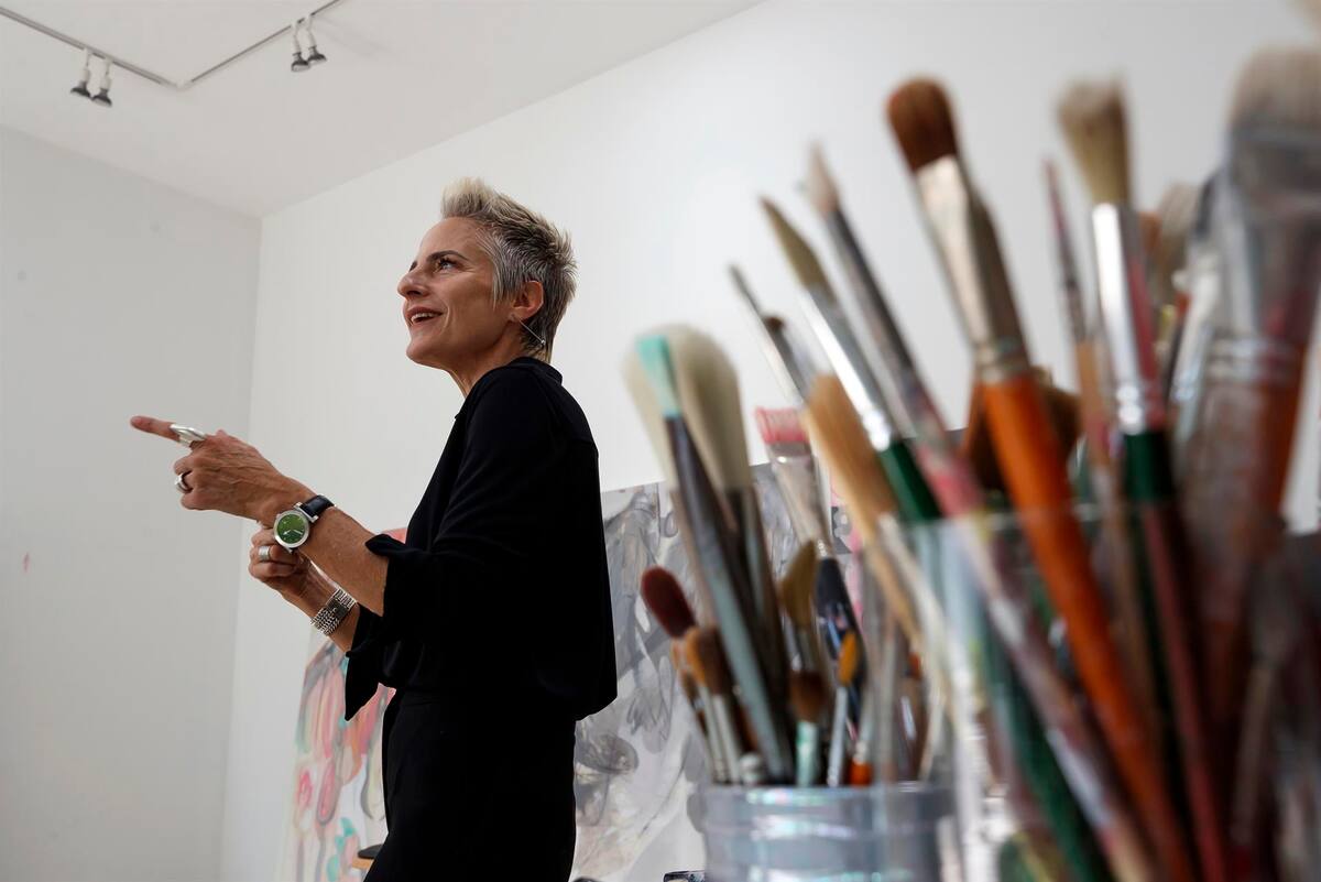 Romero también contó que siempre inicia una obra con líneas, al ser un sello distintivo en el momento creativo previo a todas sus obras, así como que es una mujer de rituales, a la que le gusta meditar y aprovechar la luz natural del sol hasta el mediodía para soltar su inspiración con un crayón, una lata de pintura, una pala o un pincel frente a un bastidor.