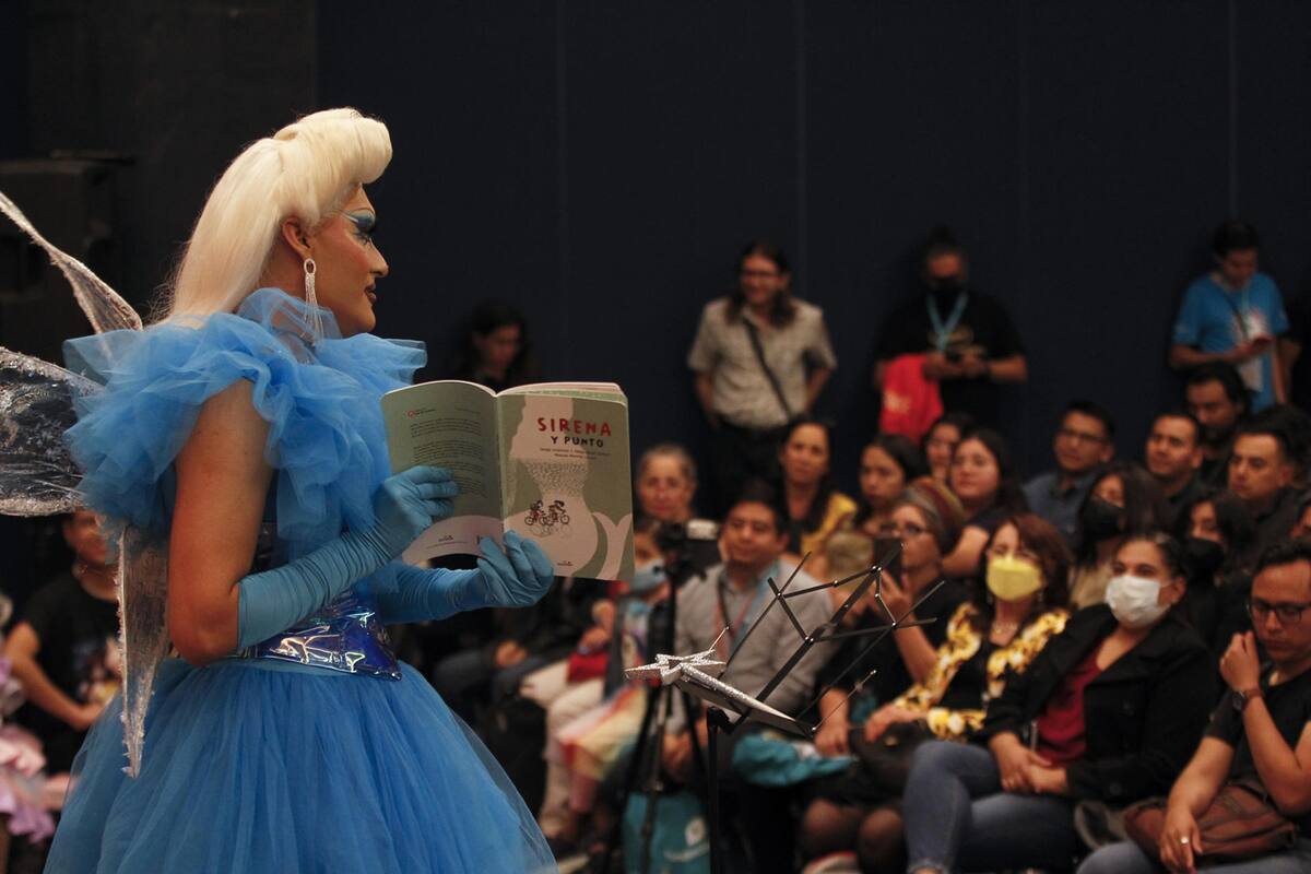 Una pareja de adolescentes, un grupo de jóvenes de la comunidad indígena wixárika, una familia con su hijo pequeño, un expositor en la feria, y un puñado de jóvenes de la comunidad LGBTQ+ se dieron cita en uno de los salones principales de la feria para escuchar los “Cuentos en tacones”.