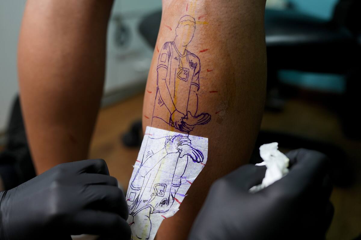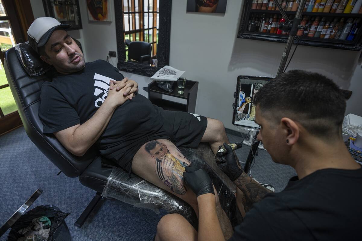 “La locura por el mundial es impresionante”, contó mientras le daba color al tatuaje de Messi que cubre todo el muslo de Fernández y que le llevó dos días de trabajo.