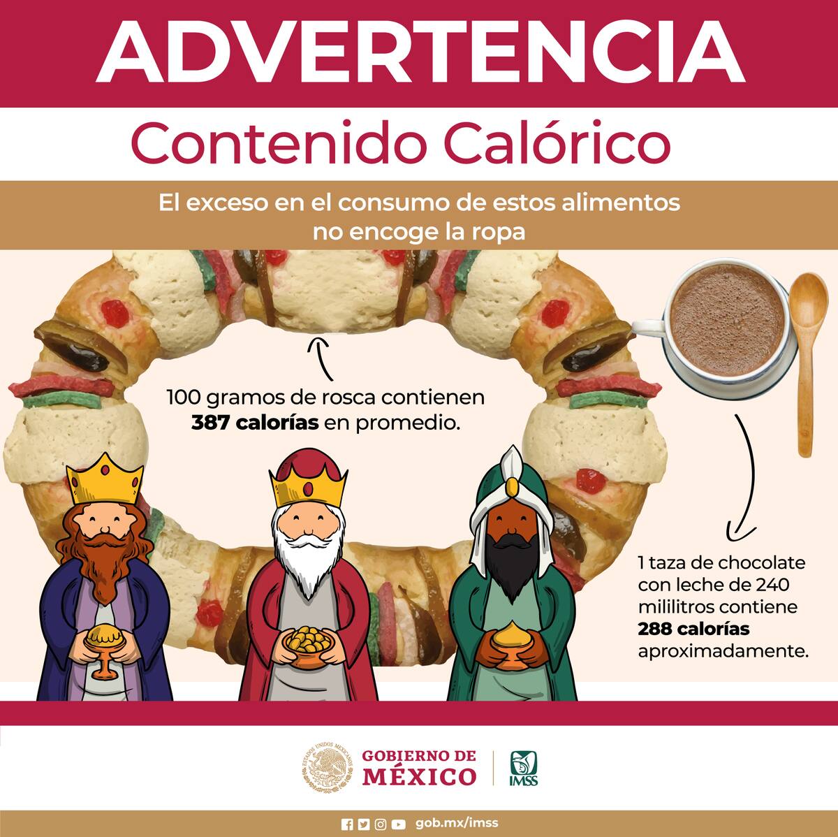 El IMSS enfatiza la importancia de prestar atención a la ingesta de rosca de reyes, ya que no solo se trata del valor nutricional de la porción de pan en sí, sino que también se considera el acompañamiento típico de esta delicia, como el atole, café o chocolate, agregando un aporte adicional de calorías.