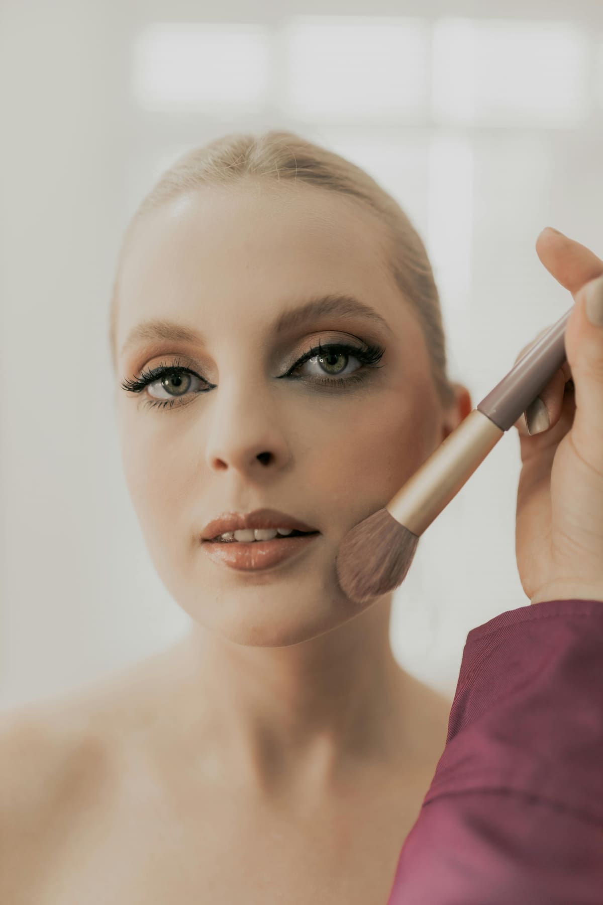 - Aplicarlo después de la base y el corrector, con una brocha grande o esponja.