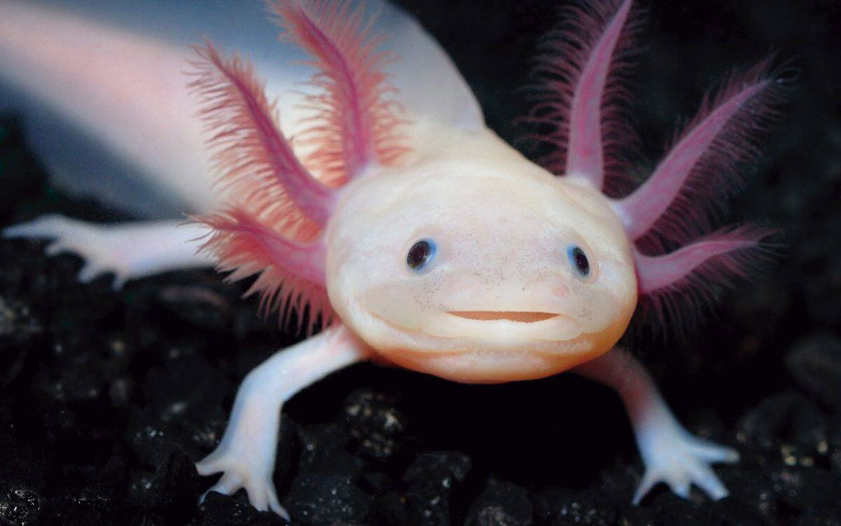 Esta condición, llamada neotenia, significa que mantiene su aleta dorsal en forma de renacuajo y sus branquias externas plumosas.
