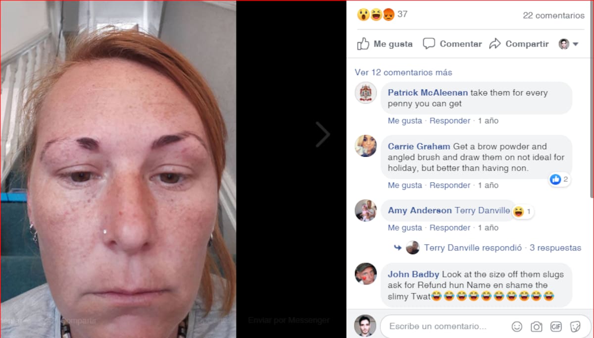 LONDRES, Inglaterra.-Las vacaciones familiares de una madre de tres niños se arruinaron después de que ella afirmara que una esteticista la dejó con las cejas de 'Angry Birds'.