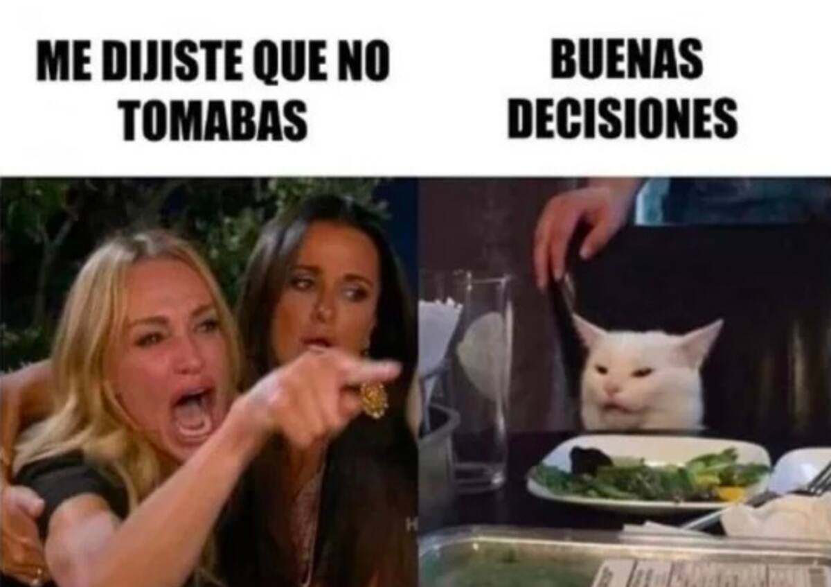 Durante los últimos días, miles de usuarios de las redes sociales, especialmente en Facebook, han compartido un curioso meme que tiene como protagonistas a dos mujeres, una de ellas gritando, y un gato blanco sentado en la mesa detrás de un plato de comida.