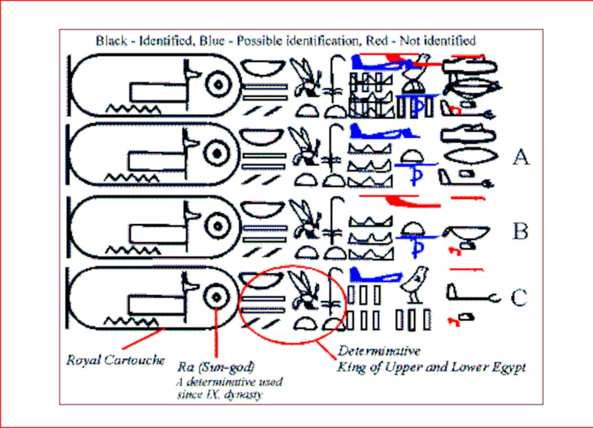 No obstante, científicos y egiptólogos coinciden en que se trata de un efecto pareidólico (es cuando un objeto es percibido erróneamente como una forma reconocible) debido, en primera instancia, al deliberado retoque de las imágenes que se muestran en los medios y, en segunda, a que las caprichosas formas de los jeroglíficos son producto de un palimpsesto, es decir, de un re-grabado que, con el paso de los siglos, se hizo evidente gracias a la erosión, uniendo dos escritos diferentes en una sola imagen.