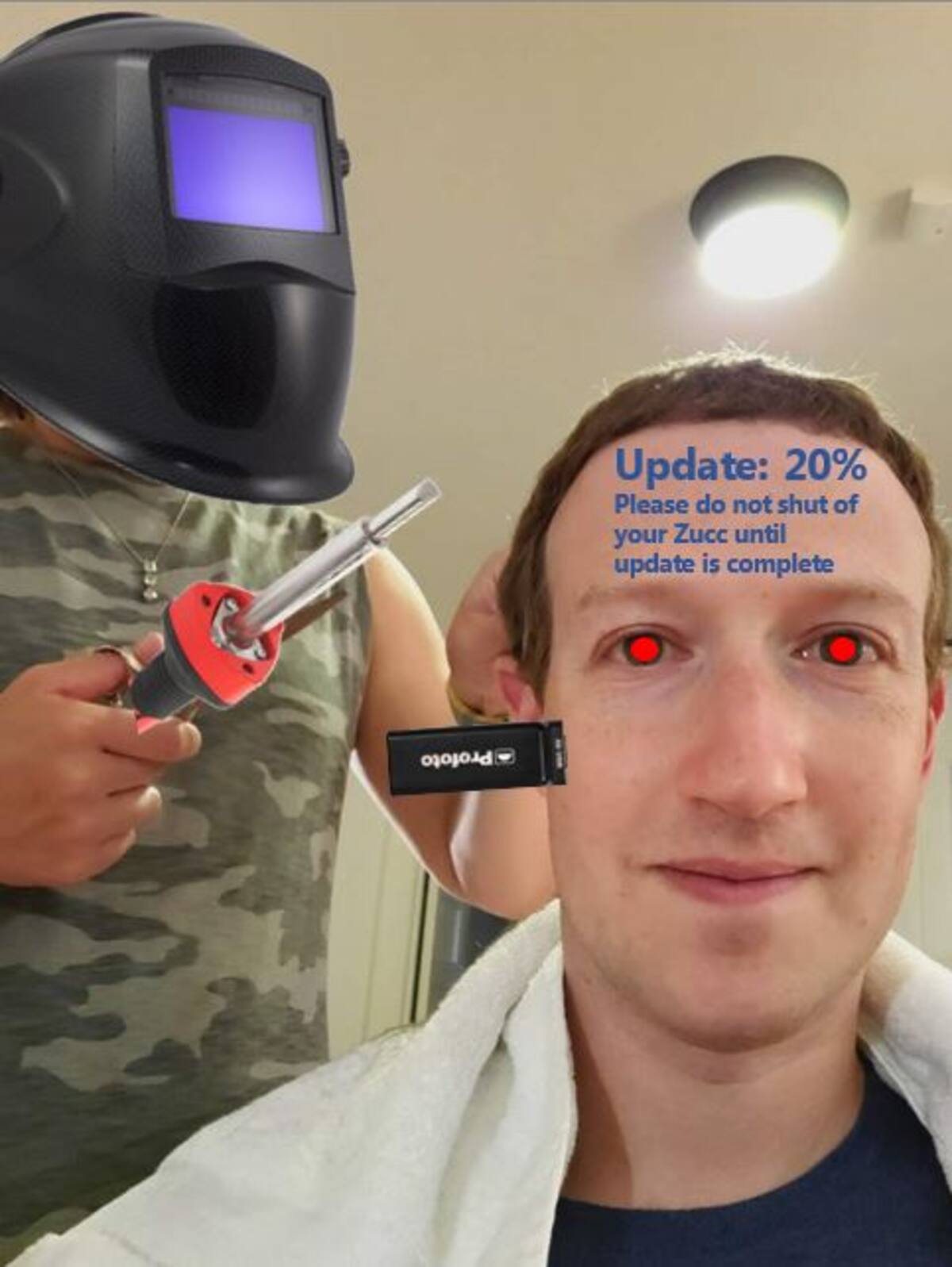 Por su parte, otro vio una semejanza entre el jefe de Facebook y un androide. "Actualización: 20%. Por favor, no apagué su Zucc hasta que se complete la actualización", reza el meme.