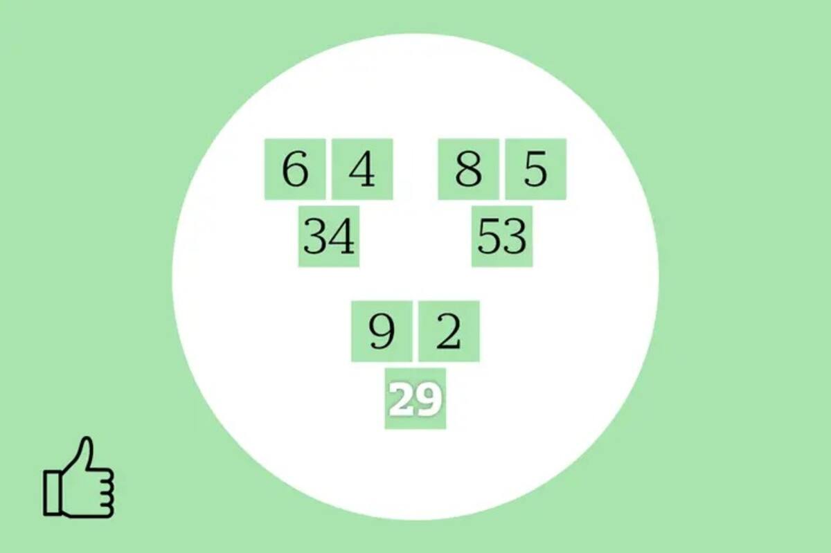 Resulta que hay que sumar los dos números de las casillas de arriba y, a eso sumarle el producto de la multiplicación de los mismos números. Por ejemplo, si las cifras son 6 y 4, primero hay que sumarlos (10) y luego multiplicarlos (24). Esos dos resultados se suman después y ahí se tiene la respuesta del acertijo en el tercer casillero (34).