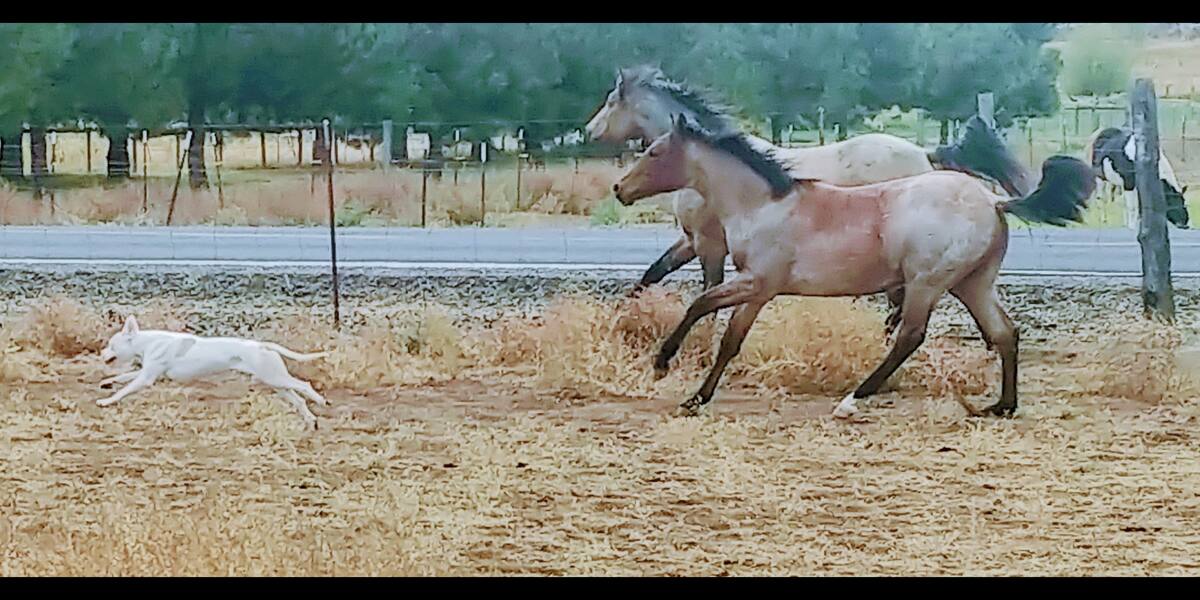En la primera imagen, el semental, llamado 'Infinite', tiene el pelaje de color más rojizo, mientras que en la segunda es casi gris.