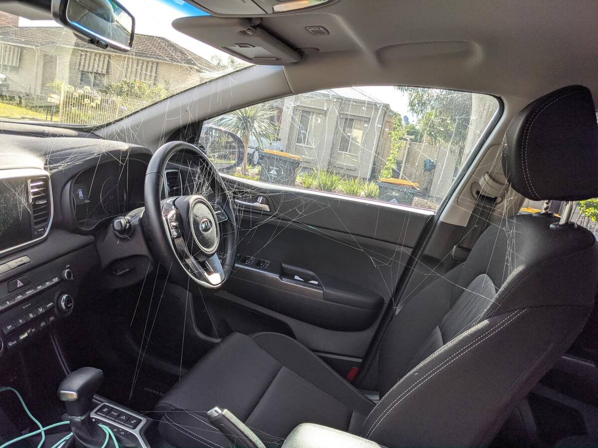 Una australiana encontró su vehículo cubierto con las redes tejidas por las crías del arácnido que había expulsado.
