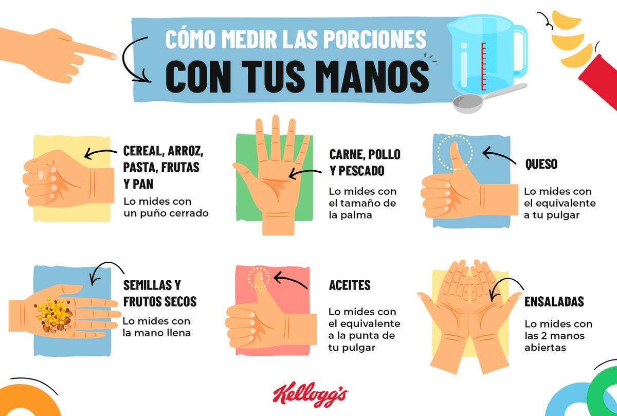 Pero ¿cuántos tenemos tazas medidoras o básculas en nuestras cocinas? Para no exceder la porción recomendada, podemos utilizar otras formas de medición como nuestras manos, un o una taza.