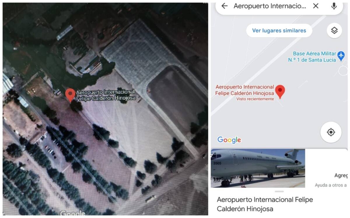 Por error o de manera deliberada con fines desconocidos hasta el momento, la localización del nuevo aeropuerto Felipe Ángeles en Google Maps fue etiquetada como “Aeropuerto Internacional Felipe Calderón Hinojosa”.
