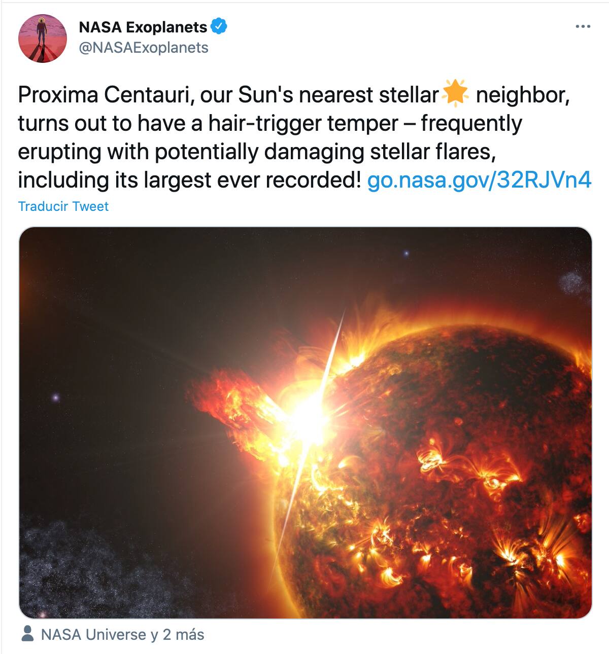 En 2018, descubrieron destellos de luz provenientes de Proxima Centauri que se veían muy diferentes a las erupciones solares. Los astrónomos nunca habían visto una llamarada estelar de este tipo.