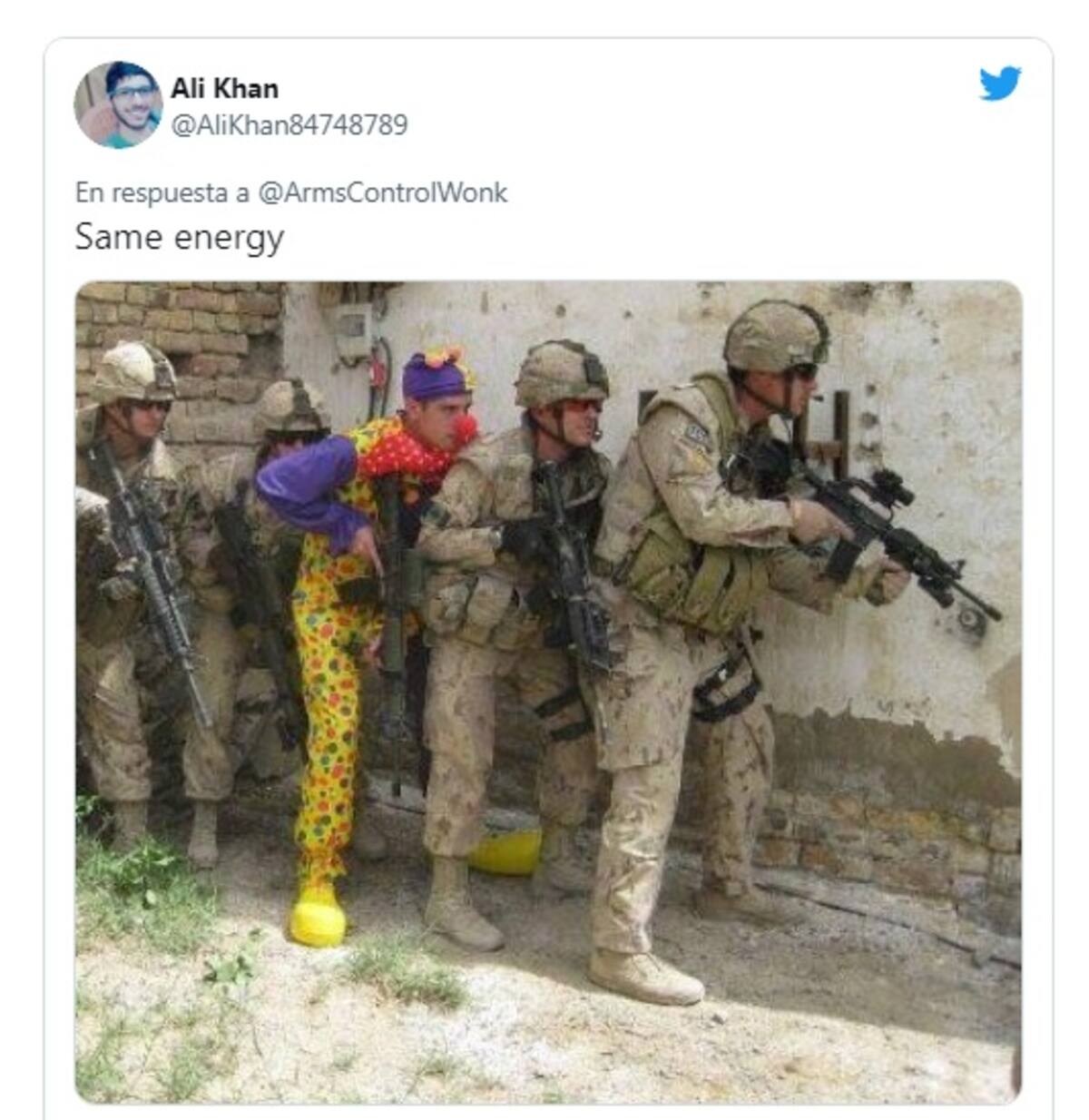 Otro internauta compartiió una foto de un payaso armado que, aparentemente, se encuentra en medio de una operación militar.