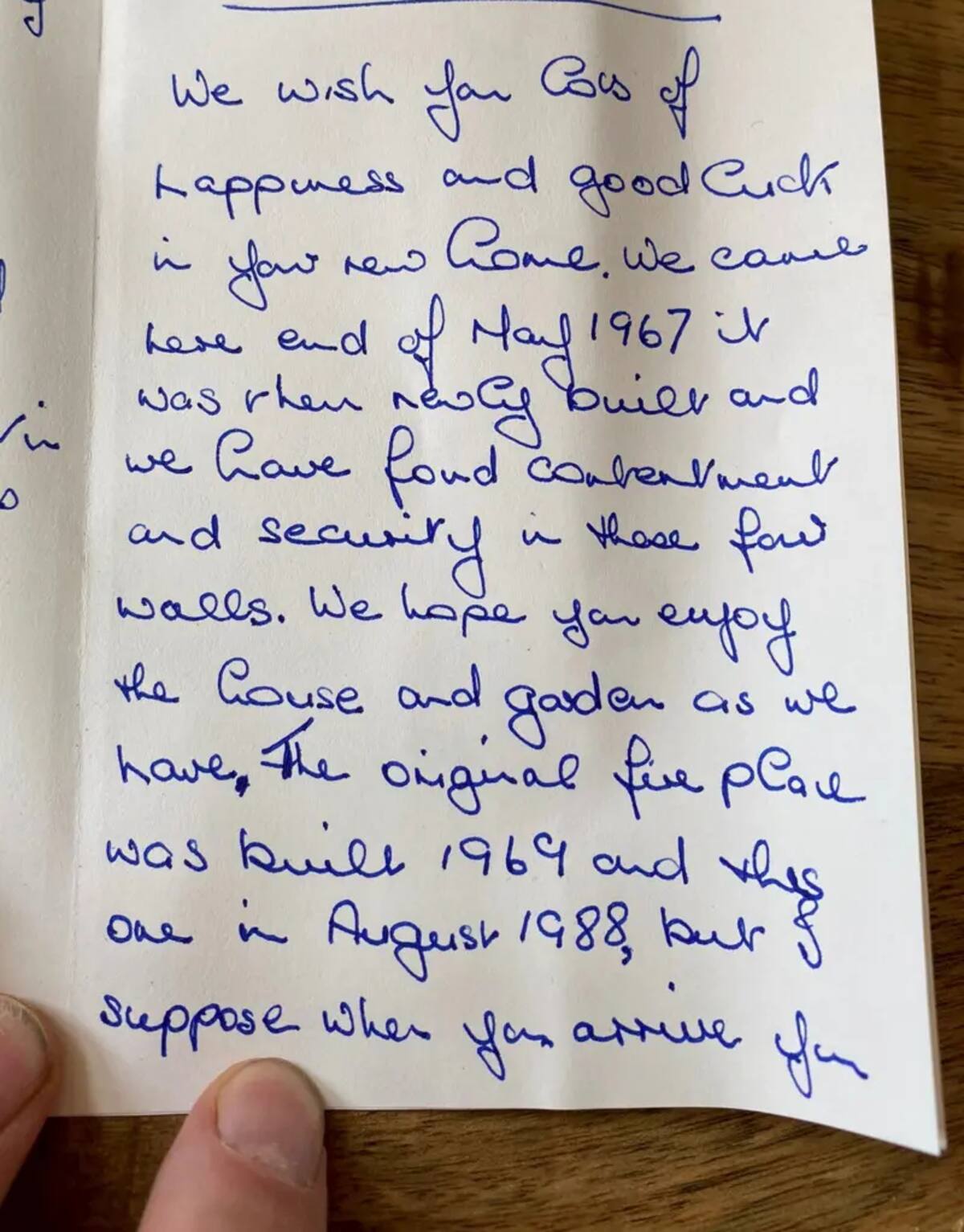 La conmovedora carta decía: “Vinimos aquí a fines de mayo de 1967, entonces estaba recién construido y hemos encontrado satisfacción y seguridad en estas cuatro paredes. Esperamos que disfrute de la casa y el jardín como lo hemos hecho nosotros.”