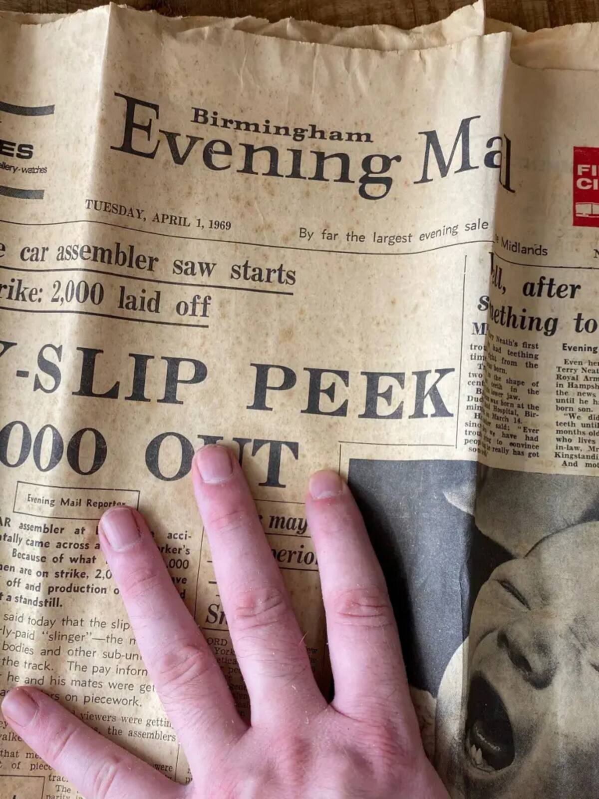 Dentro del "paquete" había viejos periódicos del Birmingham Evening Mail de ese año, así como una fotografía de la anterior propietaria, Ethel Wright.