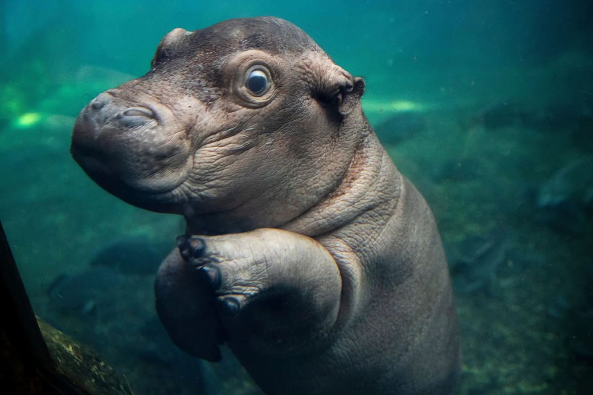 Un adorable bebé hipopótamo conoció a su hermana mayor por primera vez mientras retozaba bajo el agua en un recinto en el Zoológico de Cincinnati.